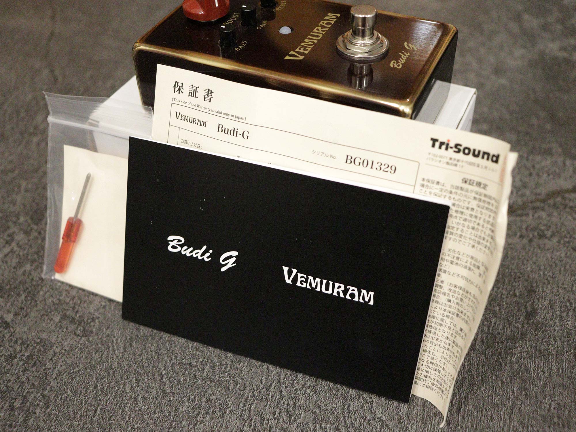 VEMURAM Budi Gの中古品です。ワイドレンジで余裕のあるヘッドルームを実現。一般的なクリーンブーストペダルと比較すると、繊細でありながら程よいグリット感を持つ「Gritty Gain」をコントロールできるのが特徴で、他のドライブペダルとの相性も抜群です。