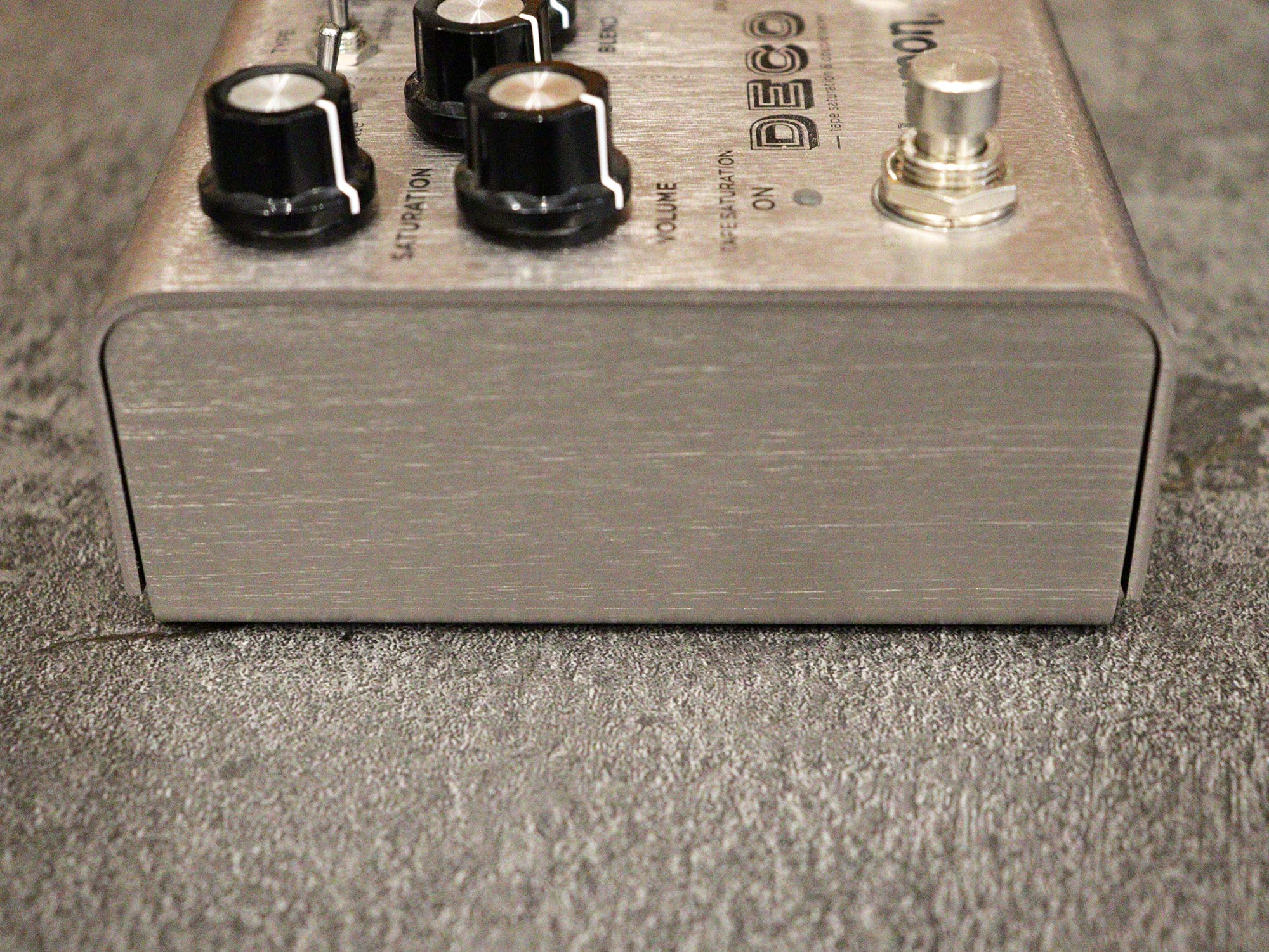 strymon DECO V2の中古品です。50年代から60年代の初期にレコーディングスタジオではオープンリールのテープマシンが導入され、クリエイティブなエンジニアたちはこれらを駆使して想像を超えるほどリッチなサウンドを生み出しました。エフェクターの元祖とも言える初期の巨大なマシンサウンドのすべてが、Decoのコンパクトサイズに凝縮されています。