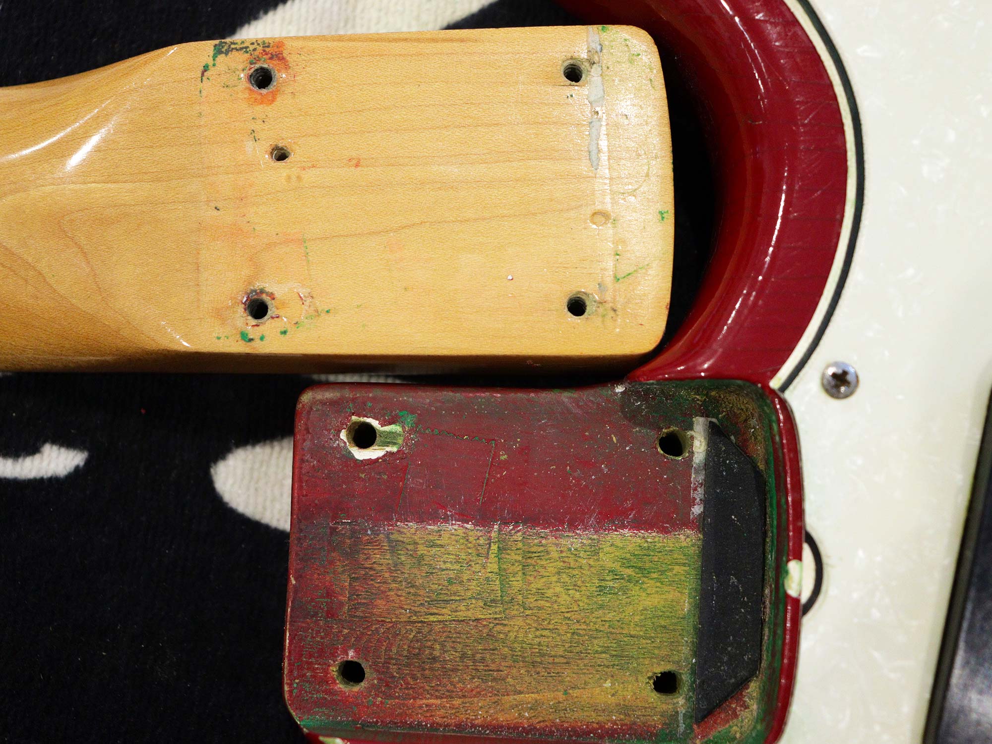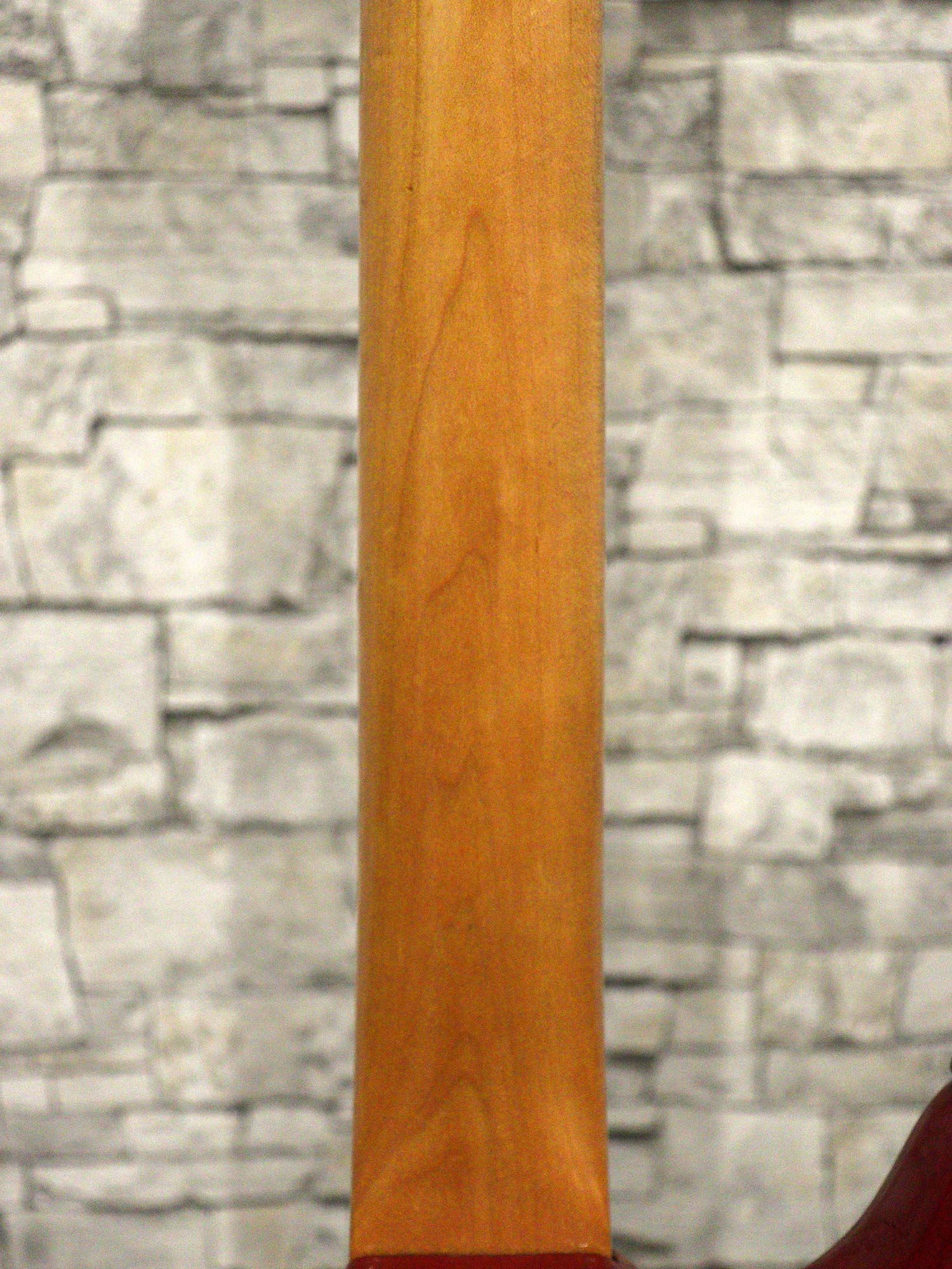 ネックポケットにシムが挟んであり、トラスロッドは左右に余裕があり効きも良好、ネックは現在厳しめに見て若干のネジレ(6弦側若干の順反り、1弦側ほぼストレート)、フレットは全体的に残り5割程度ですが、極端なビビりや音詰まりは無く演奏性は良好です。