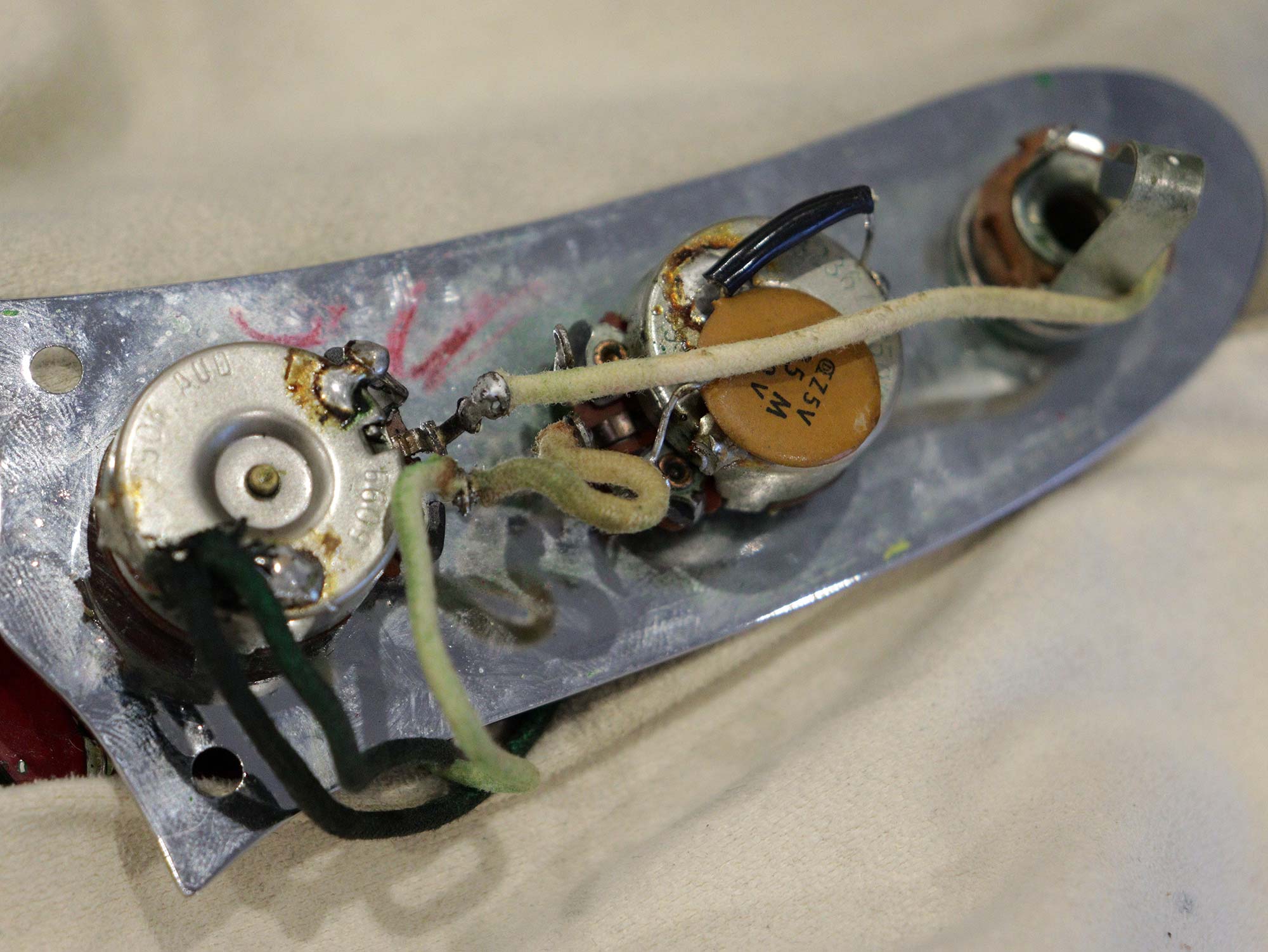 1弦ペグに歪が見られますがチューニングには影響はなく、「Fender」の部分のみリデカール、コントロール部にタッチアップされた箇所、使用感、当てキズ、全体にウェザーチェックが見られ貫禄ある外観となっております。