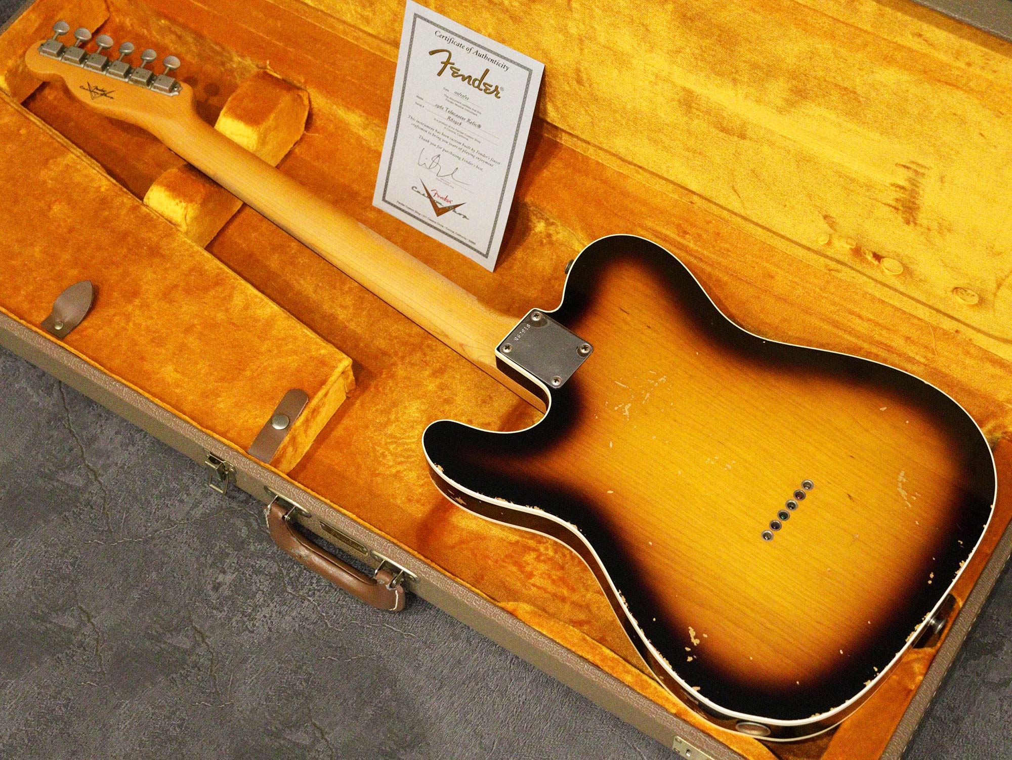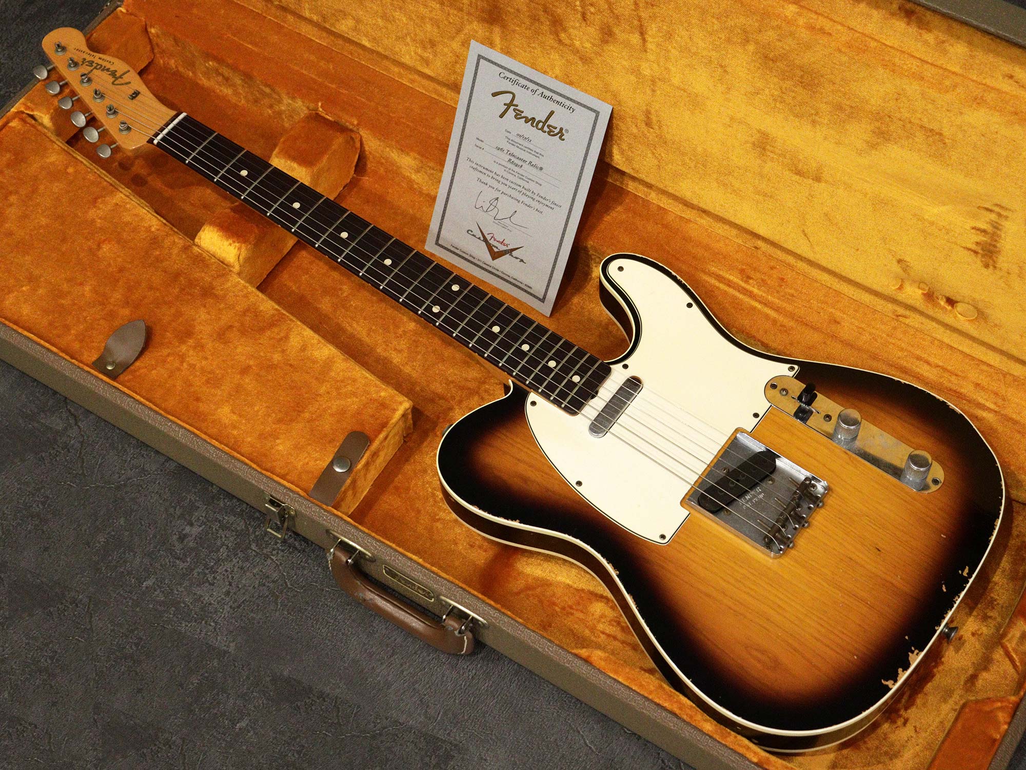 技術を卓越した「マスタービルダー」や熟練の職人チームにより、1本1本丁寧に製作されるフェンダーの最高峰Fender Custom Shopの61年の仕様を再現したモデル「Fender Custom Shop 1961 Custom Telecaster Relic Faded 3Tone Sunburst」の2012年製中古品です。
