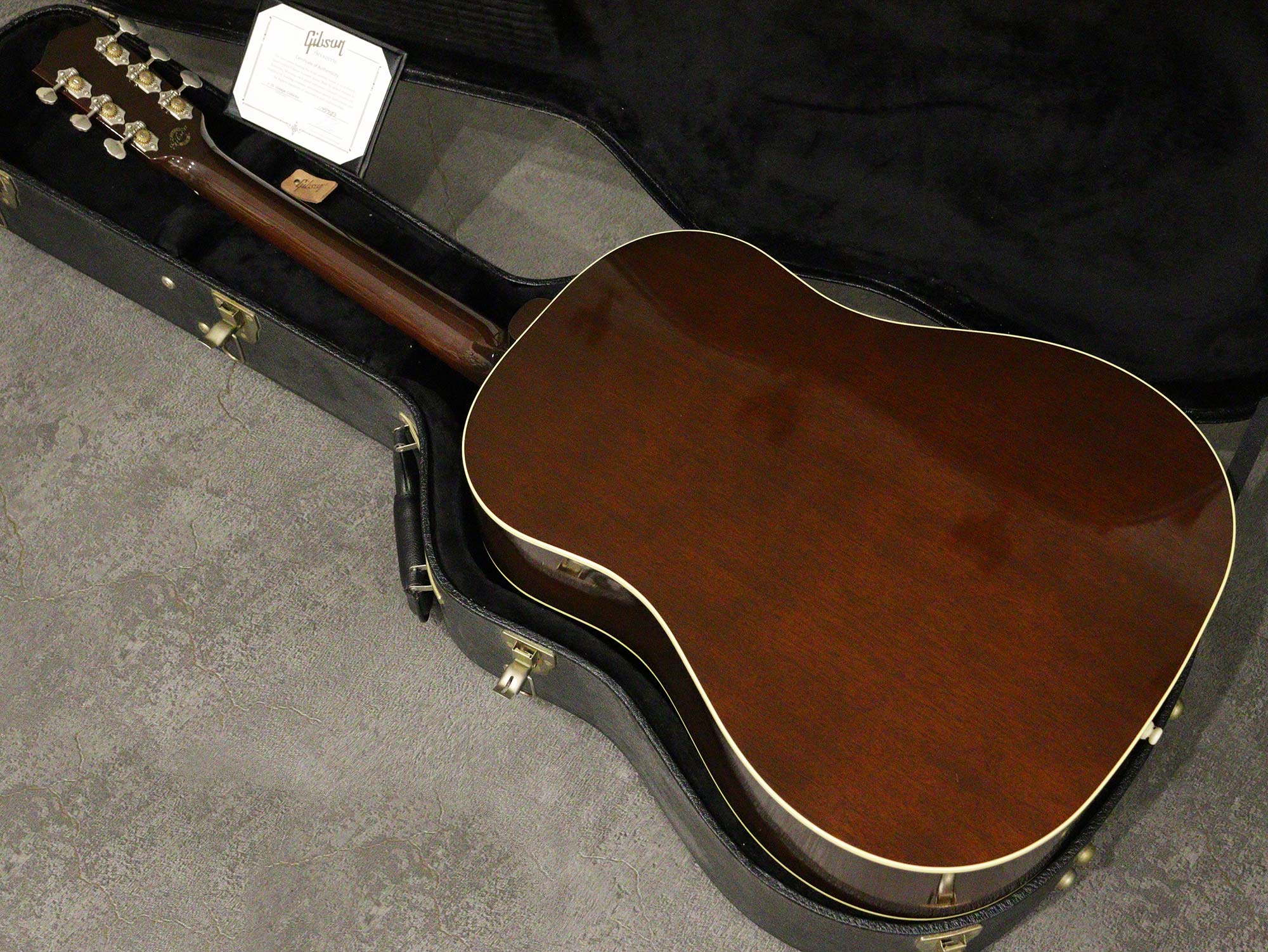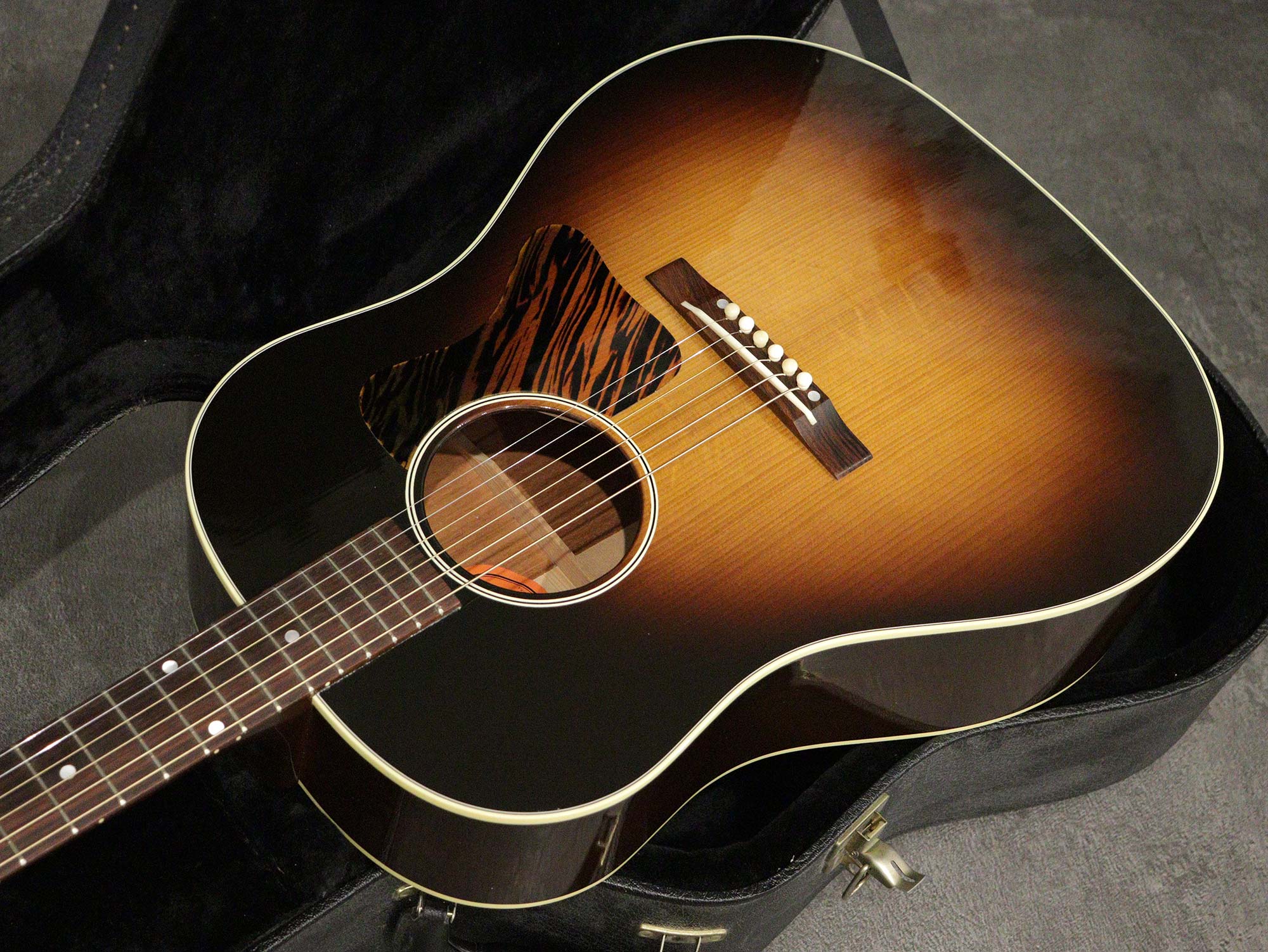 サーマリーエイジドされたアディロンダックスプルースTopによる反応が良く大きな鳴りに加えてGibsonらしいハギレの良さが心地よく、フィンガーピッキングでもフラットピックのストロークでもしっかり使える上質なラウンドショルダーをお探しの方にオススメの一本です。