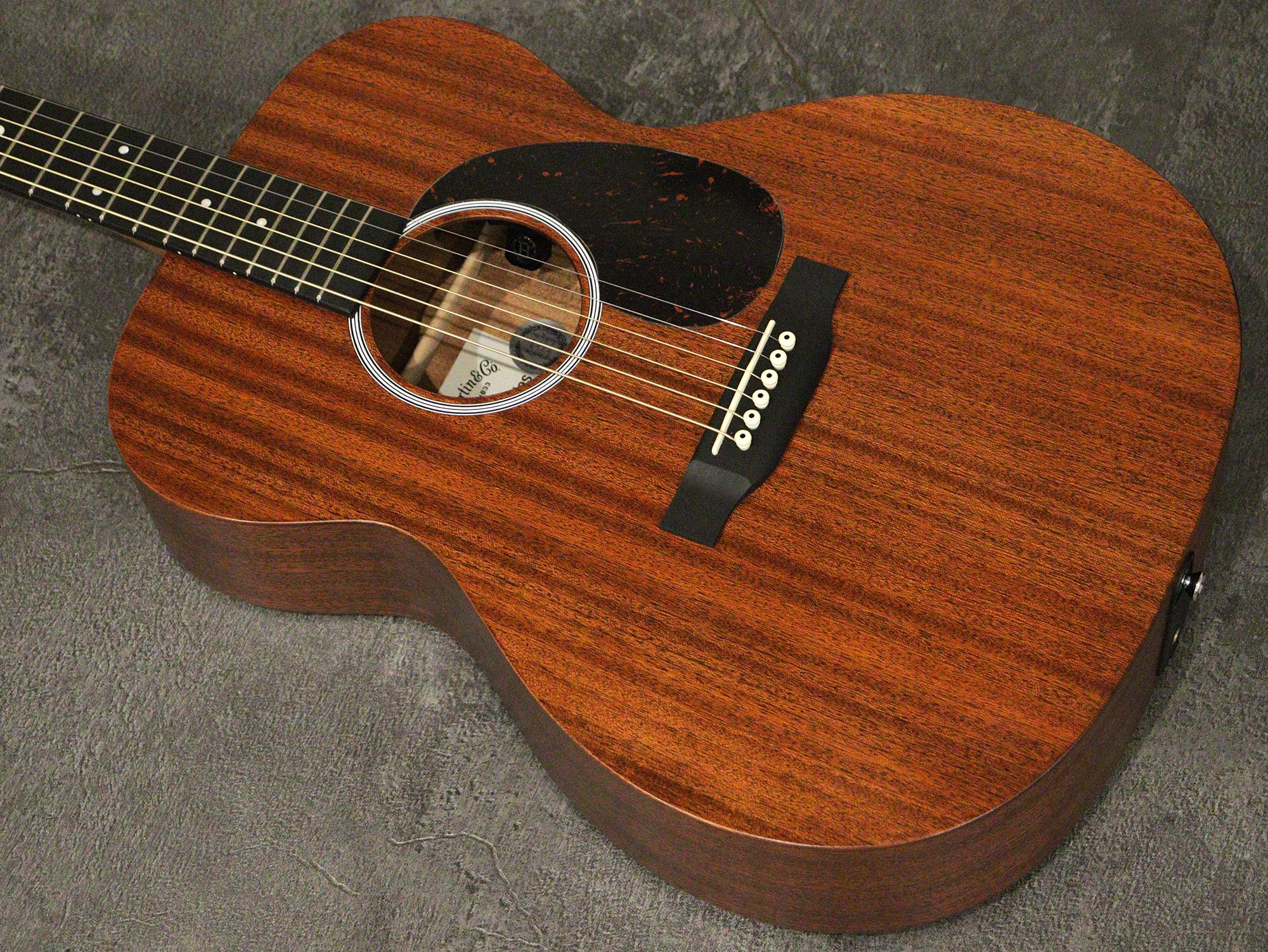オールサテンフィニッシュにて仕上げられたサペリトップ、サペリSide/Backのトリプルオーサイズボディ、セレクトハードウッドネック、リッチライト指板&ブリッジ、ブラックピックガード。ピックアップシステムには「Martin E-1」を搭載し、1Vol、1Tone、Phaseスイッチ、視認性の良いチューナーがホール内に内蔵されております。