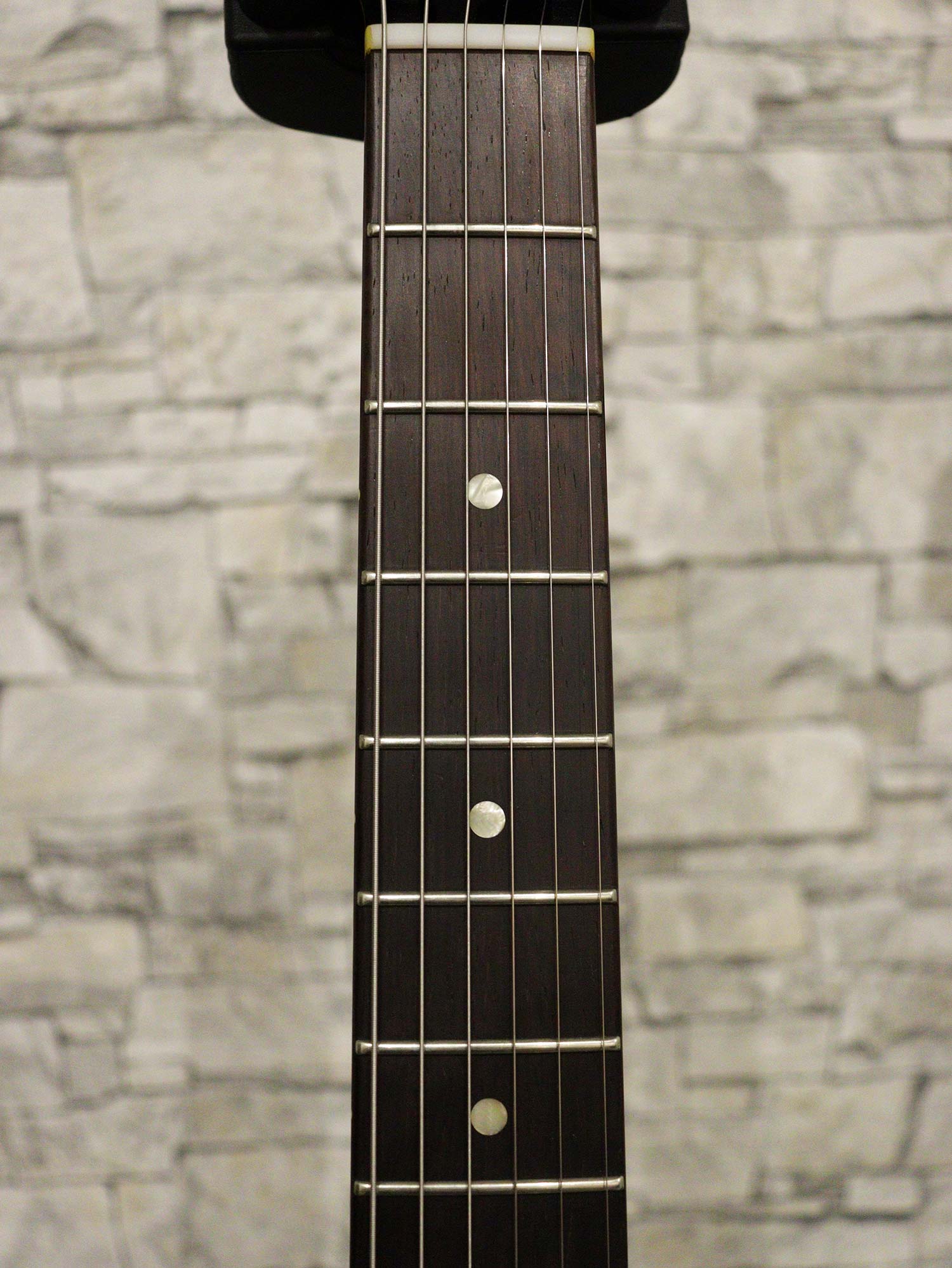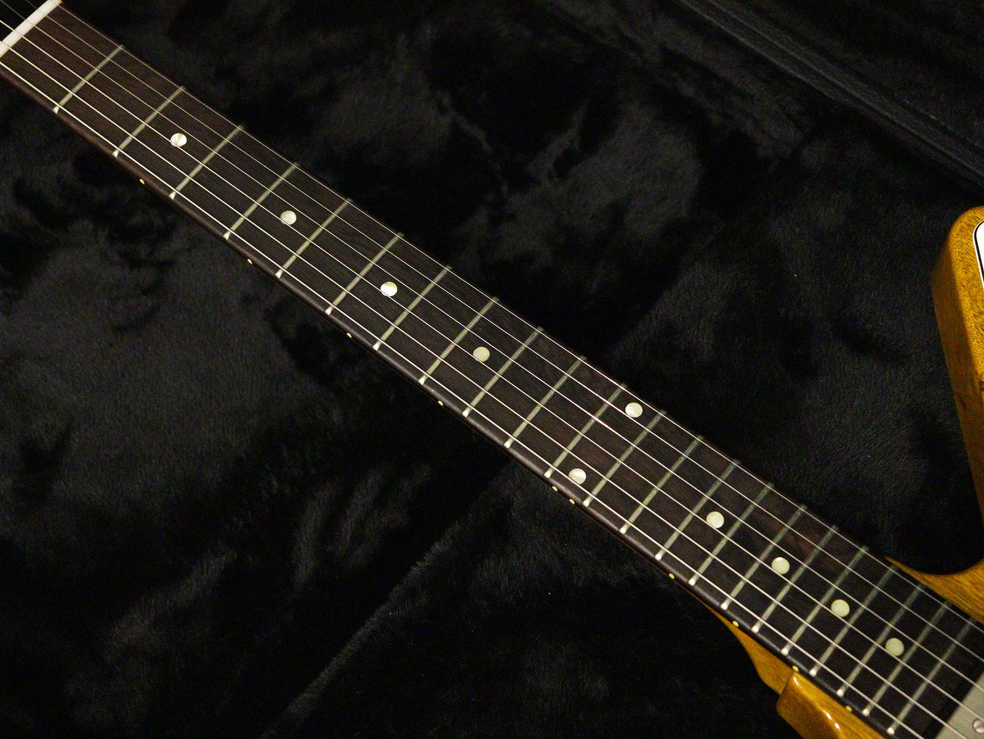 ネックはほぼストレートの丁度良い状態でトラスロッドは両方に余裕があり効きも良好、フレットはほとんど減りも見られず、ビビリや音詰まりもなく外観/演奏性共にとてもよいコンディションを保っております。