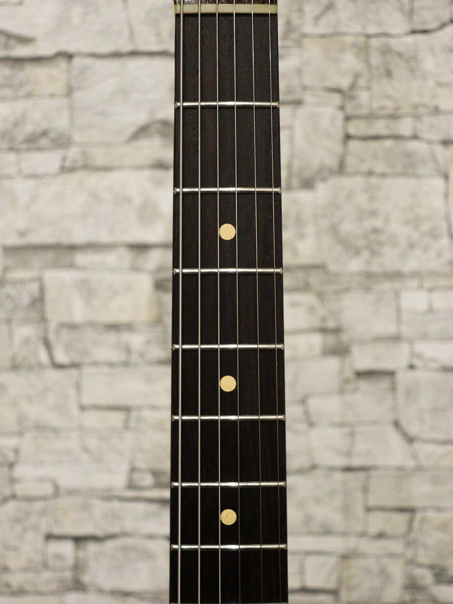 ネックはほぼストレートの丁度良い状態でトラスロッドは締める方向に十分な余裕があり効きは良好、フレットも全く減っておらず、気になるようなビビりや音詰まりも無く演奏性は良好です。