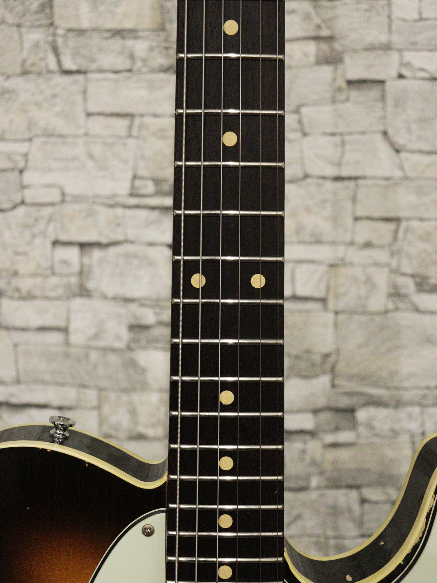 雰囲気の良いレリック加工による長年に渡って使い込まれたようなルックスと、ハイポジションのチョーキング時音詰まりを解消した現代的な演奏性、しっかり使える格好良いカスタムテレキャスターモデルをお探しの方にオススメの一本です。