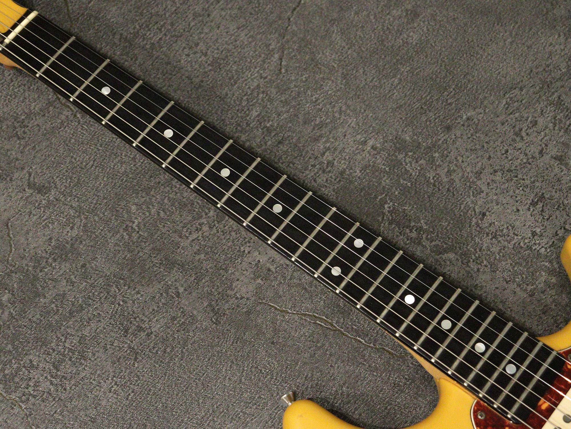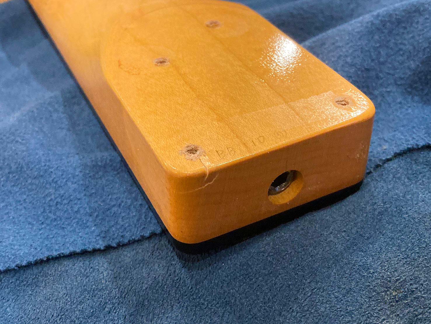 ネックエンド部に若干のヒビ割れが見られますが、ネックはほぼストレートの丁度良い状態でトラスロッドは締める方向に十分余裕があり効きも良好、フレットは全体的に7割キープビビりや音詰まりも無く、演奏性も良いコンディションを保っております。