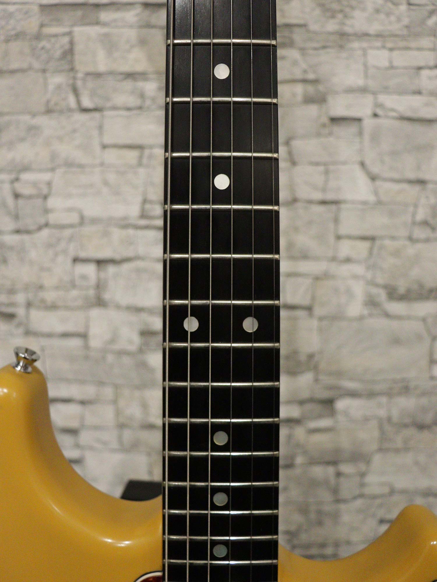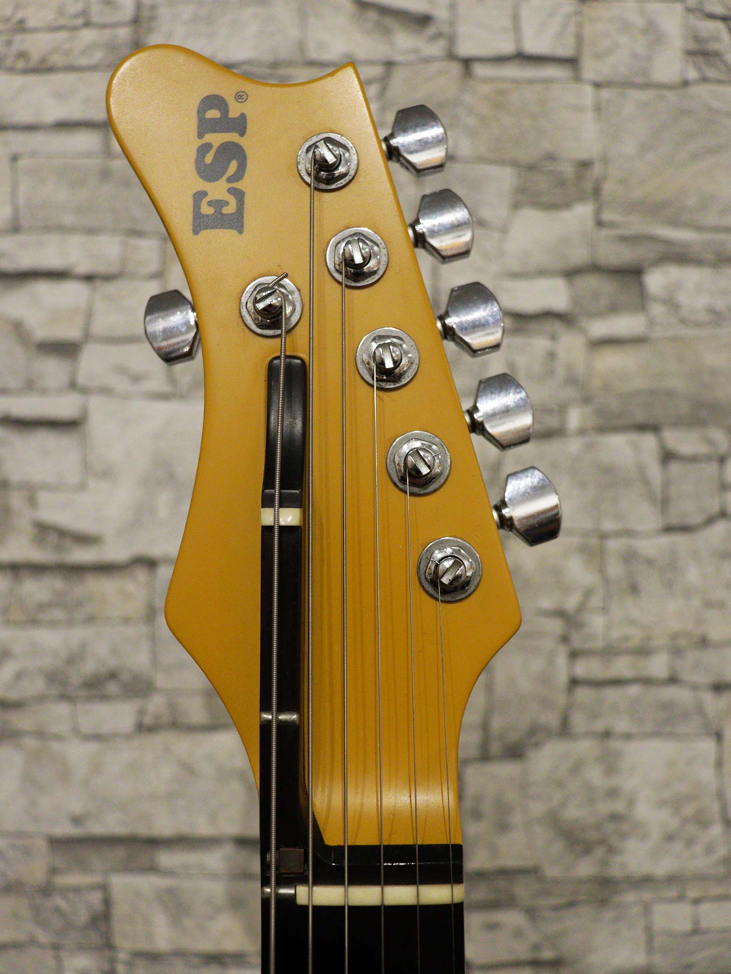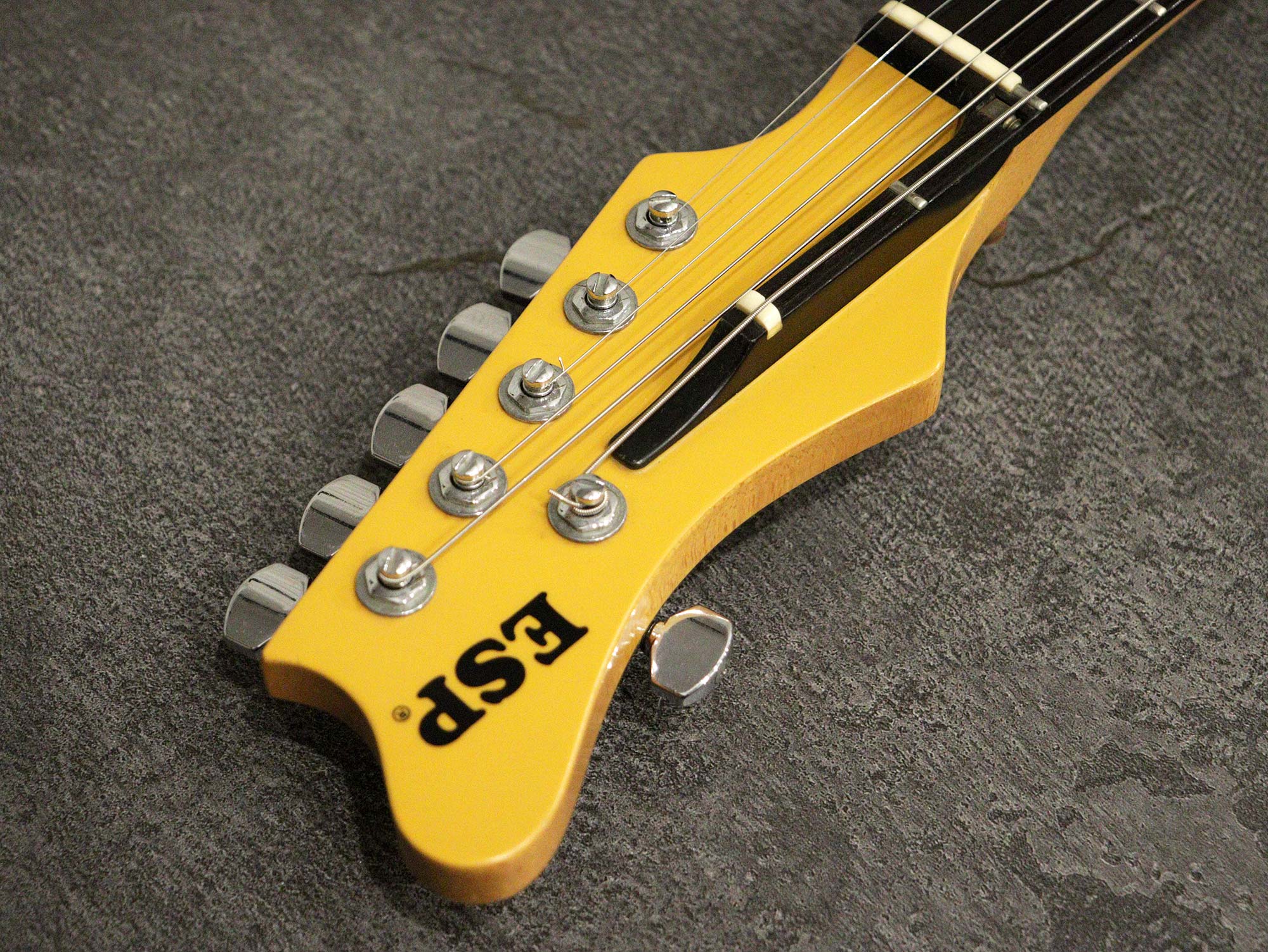 艶消しのような質感を持つ「Mustard Yellow」で仕上げられた特殊シェイプのアルダーボディ、22フレット仕様のエボニー指板、6弦にマイナス2フレットを備えチューニングはそのままでドロップDが可能なハードメイプルネック。ピックアップはフロント「Seymour Duncan APS-2」、センター「ESP SS-120」、リア「Seymour Duncan STL-1b」を搭載、5wayセレクタースイッチ、1Vol、1Toneのコントロール、ブリッジは「Dynamic Tremolo」を採用。
