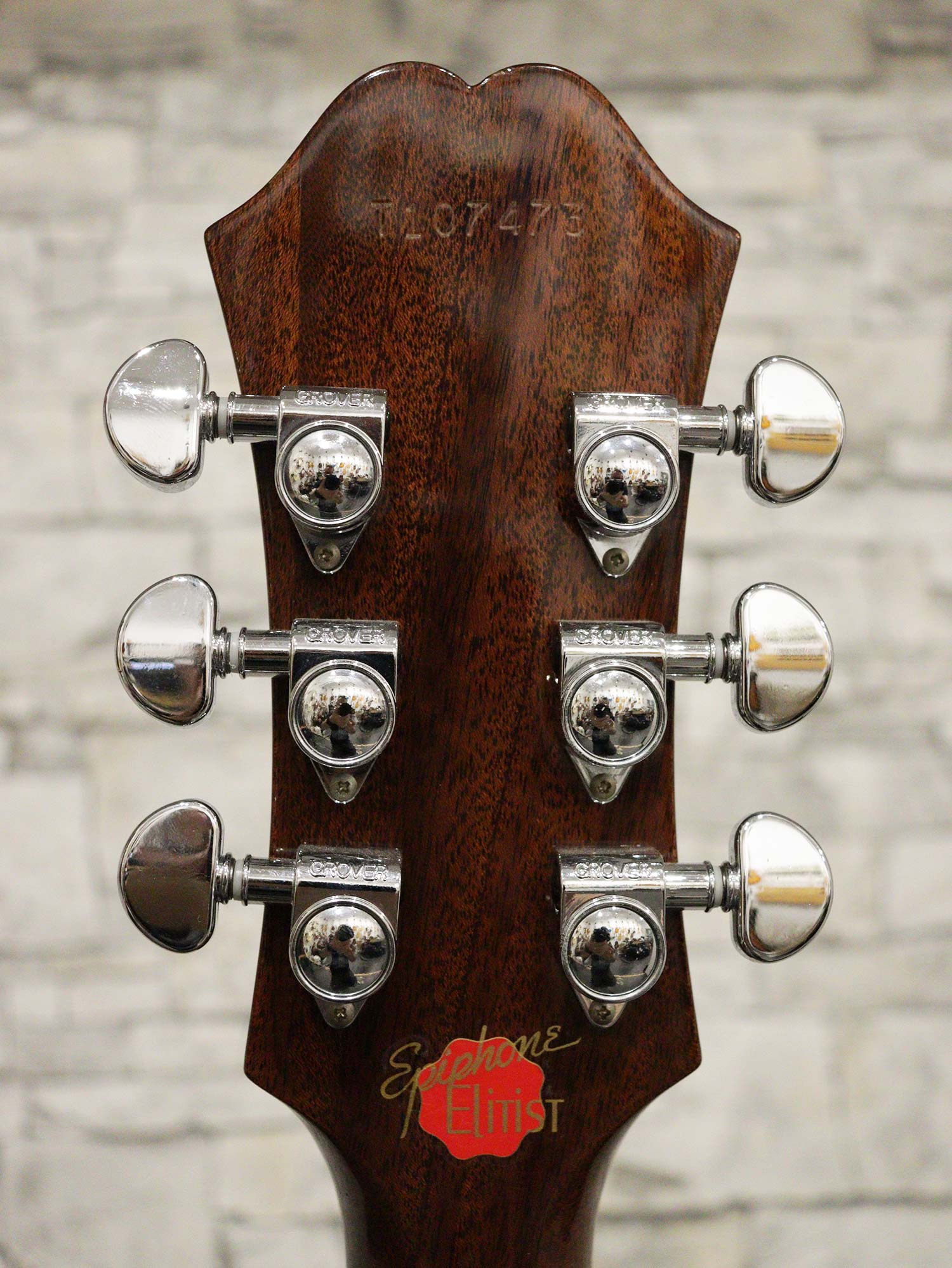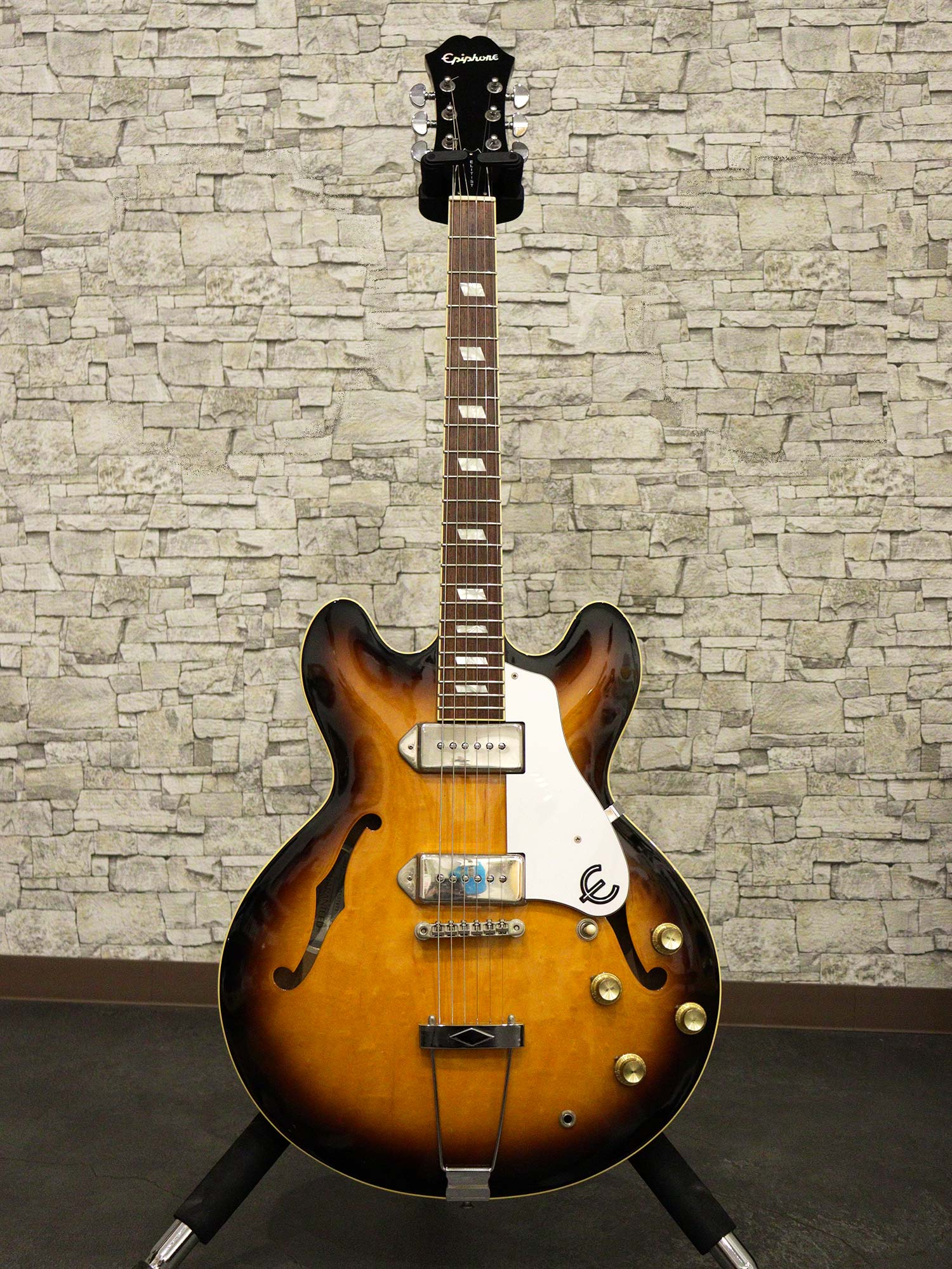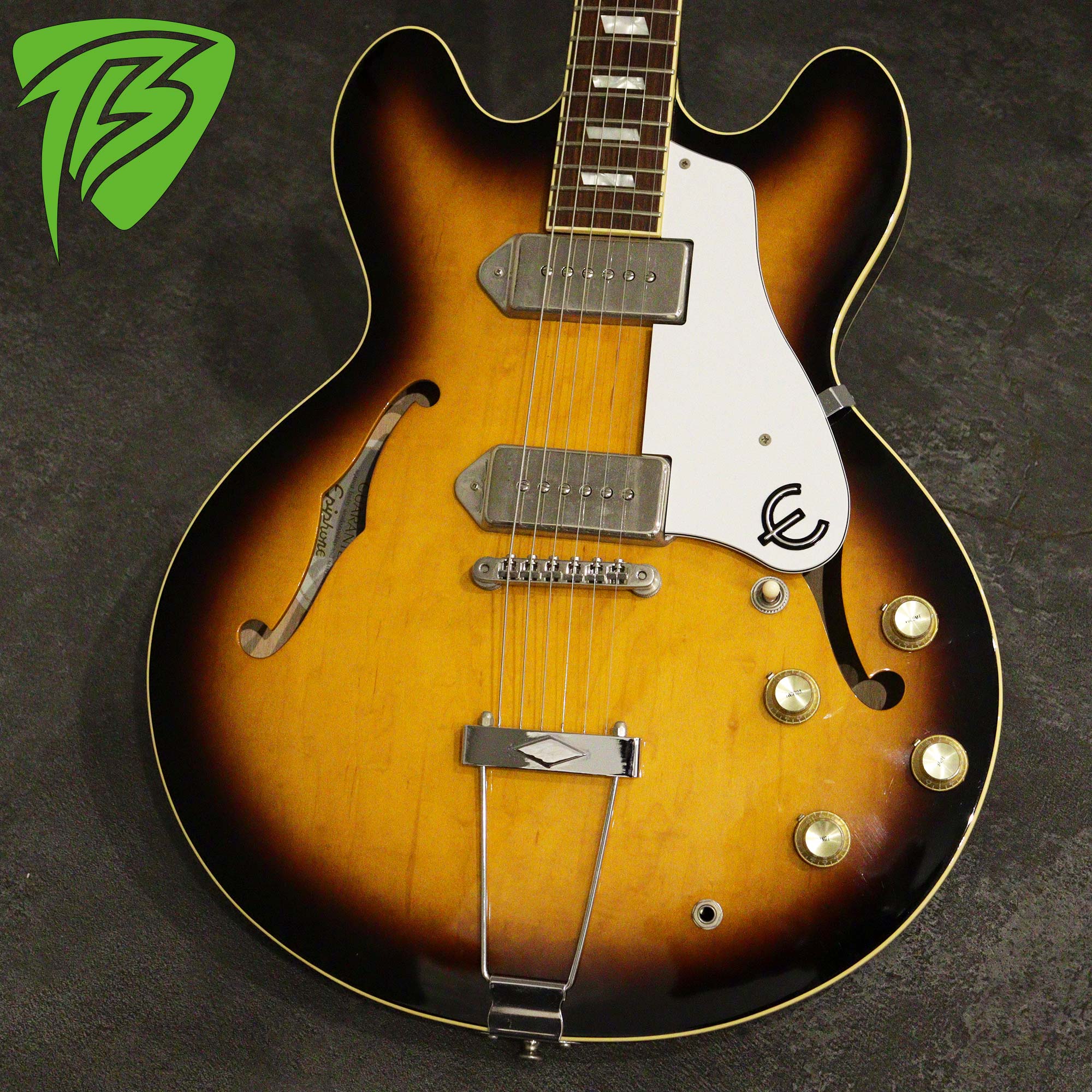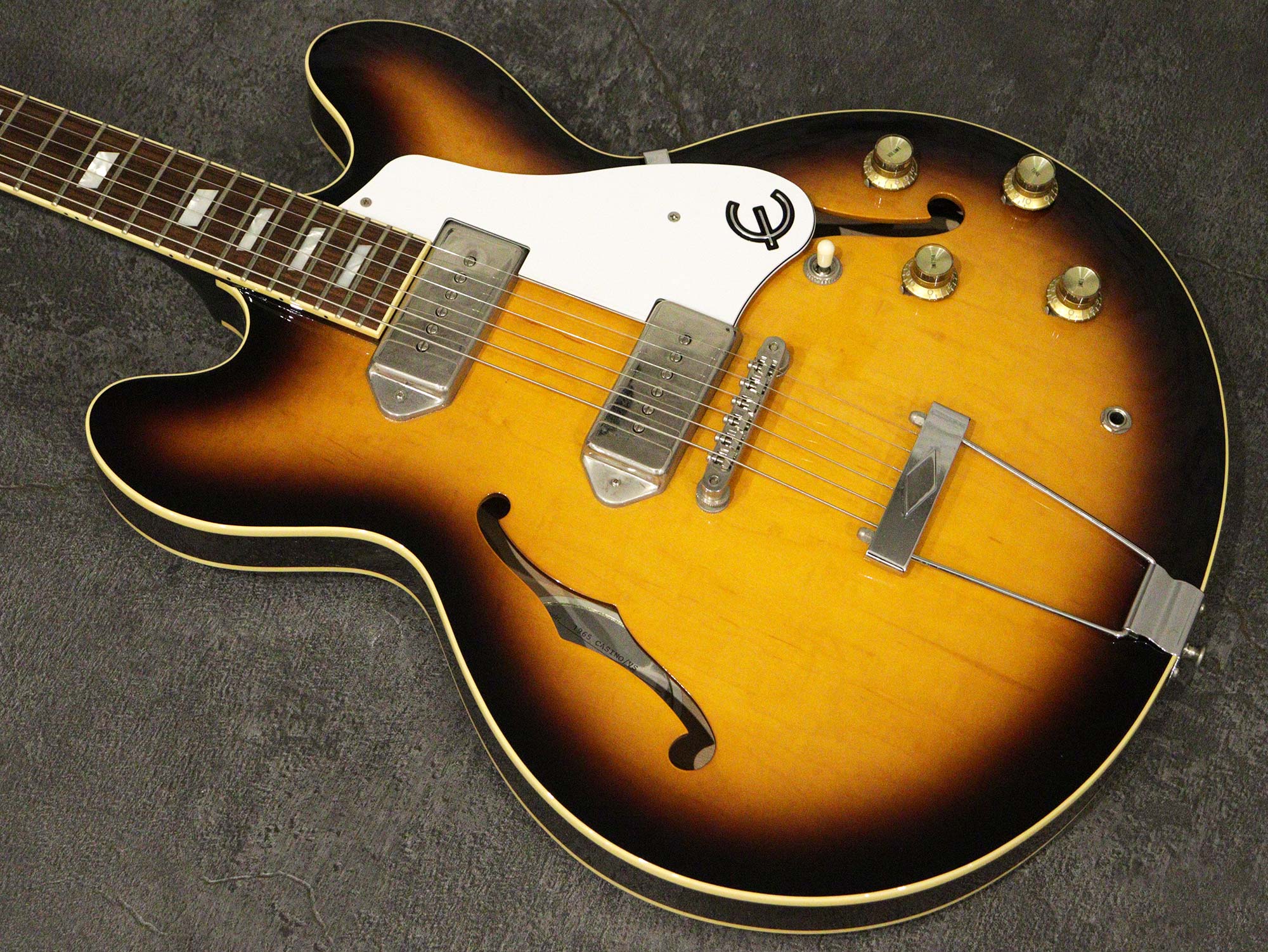 高い再現度とクオリティを誇る寺田楽器製 Elitistモデル「Epiphone Elitist 1965 Casino Vintage Sunburst」の2010年製中古品です。「Vintage Sunburst」カラーで仕上げられたフルアコ構造のメイプルボディ、ローズ指板、マホガニーネック。ピックアップはオリジナルUSA製「EP-90」を搭載、3wayトグルスイッチ、2Vol、2Toneの定番のコントロール。