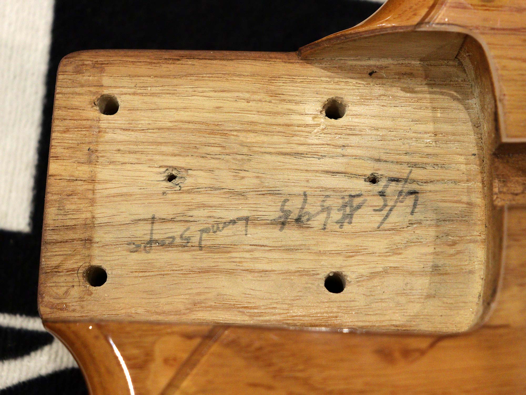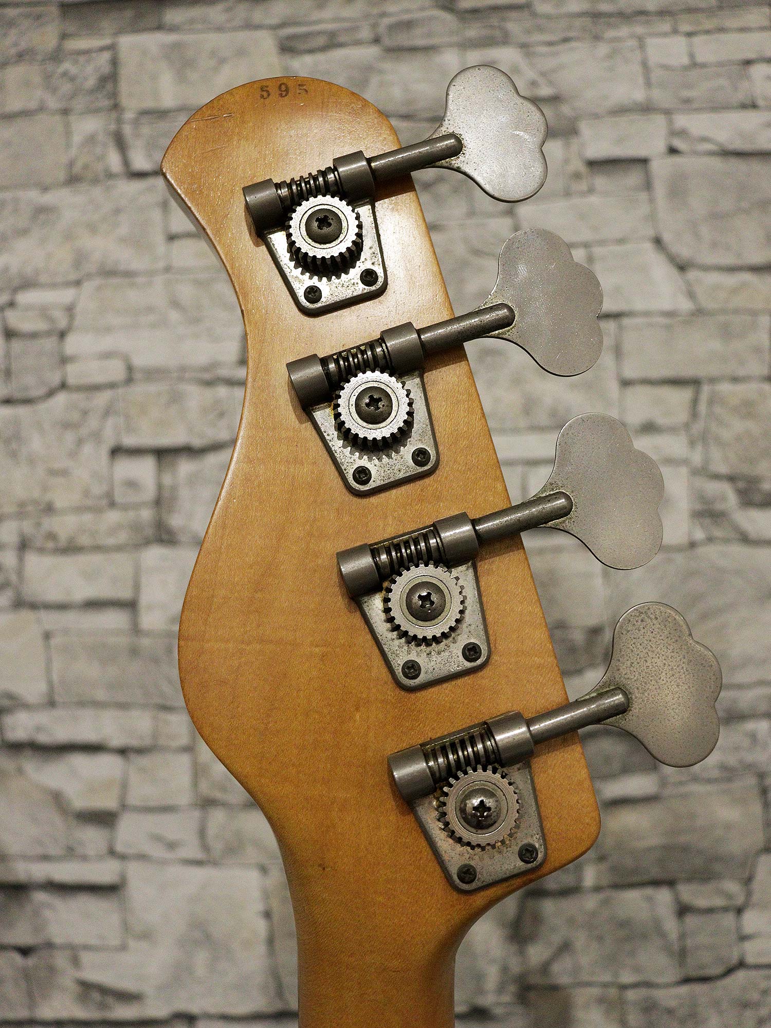 ヘッド部にストリングガイド追加、ナットが牛骨にて交換されており、年代相応の使用感、スリキズ/当てキズは見られるものの、外観を損なうようなダメージは見られない外観コンディション。