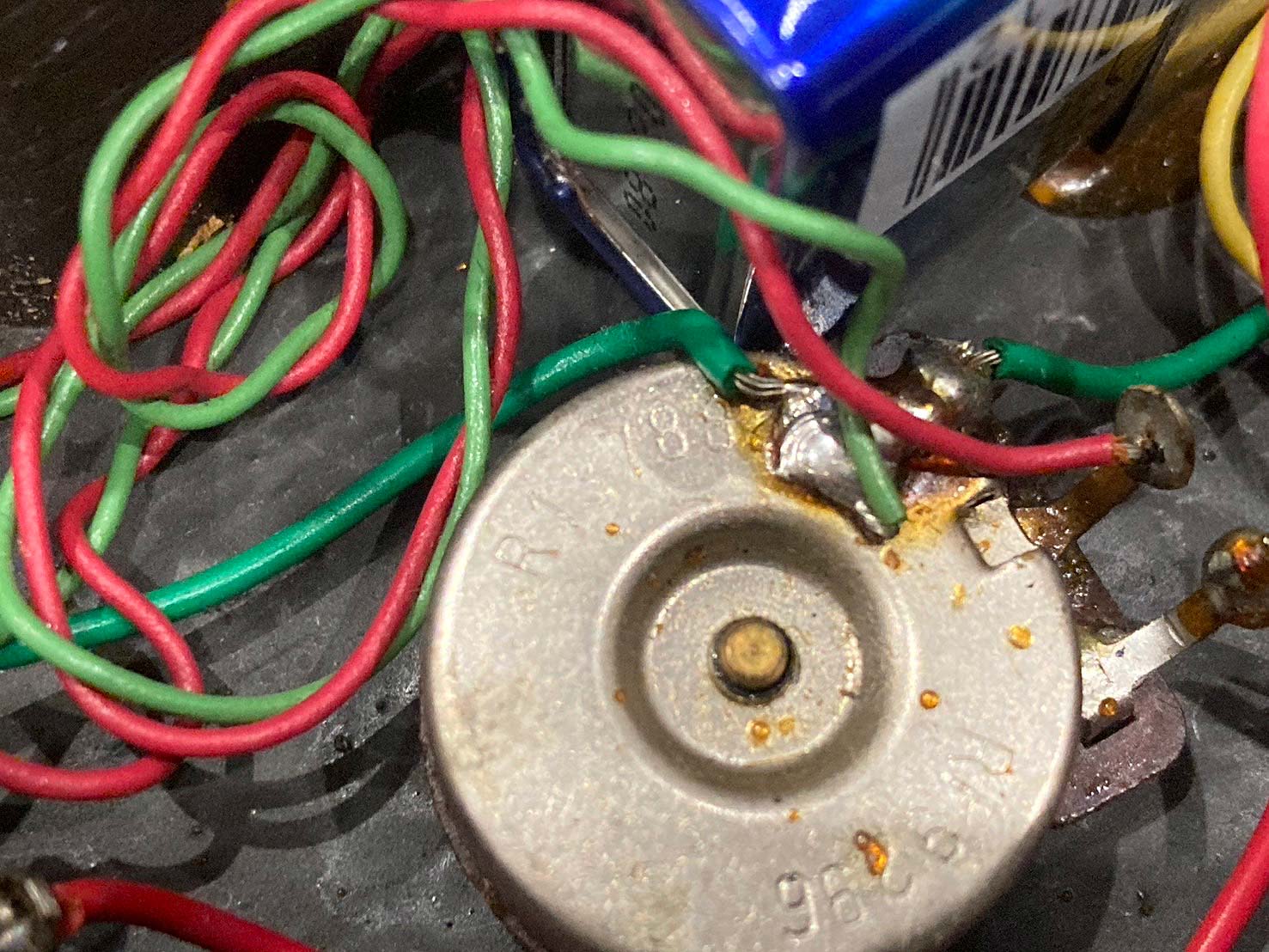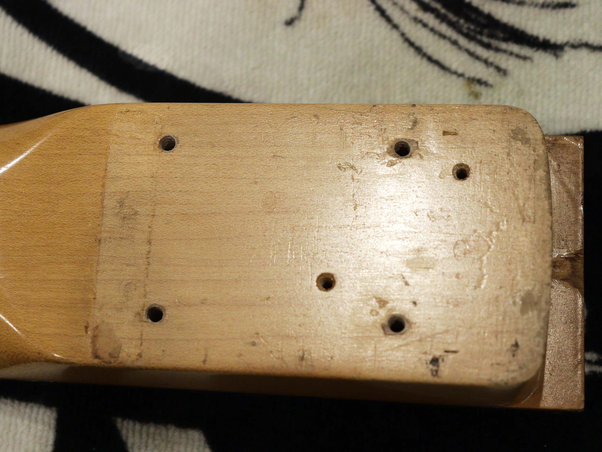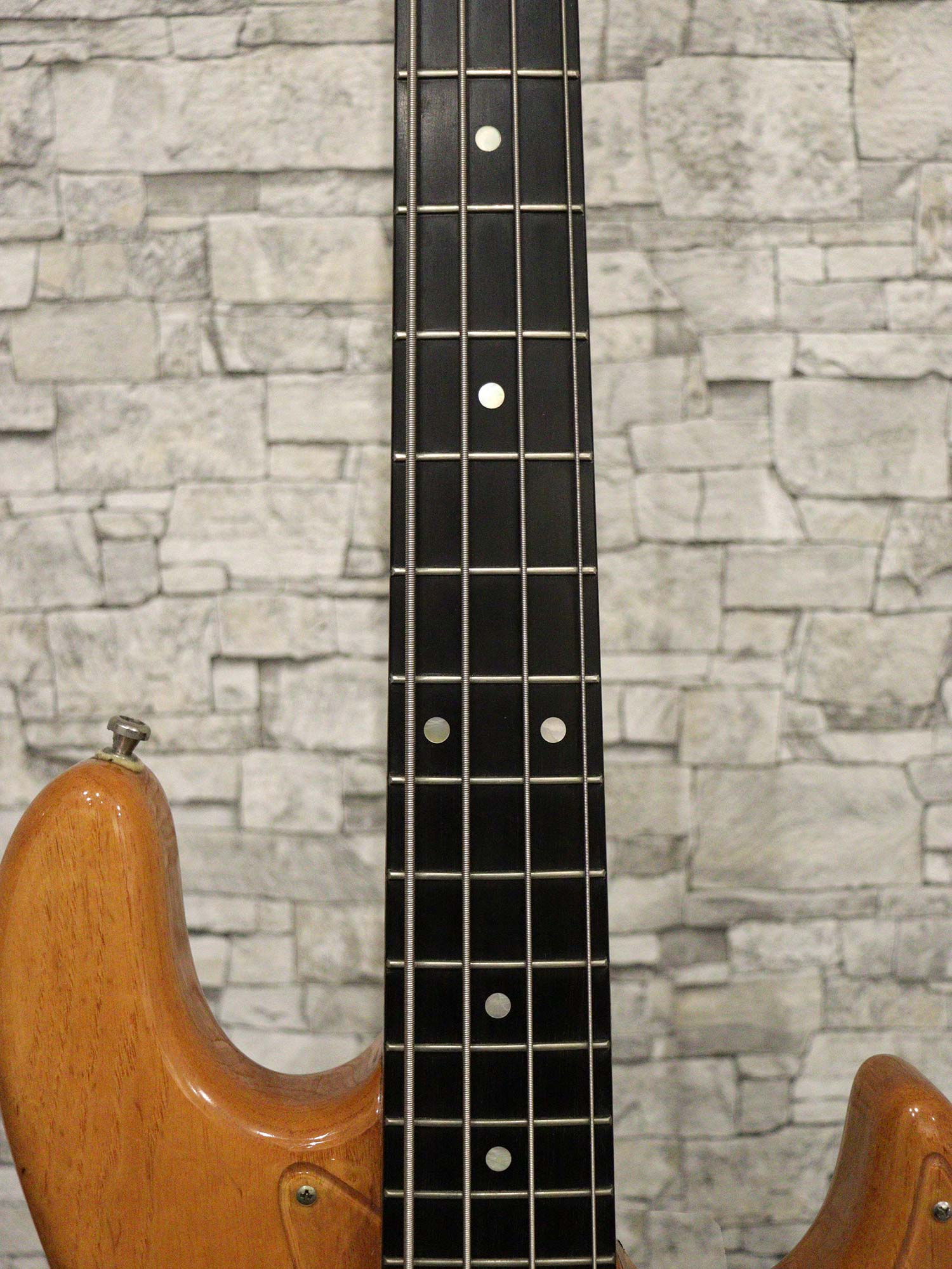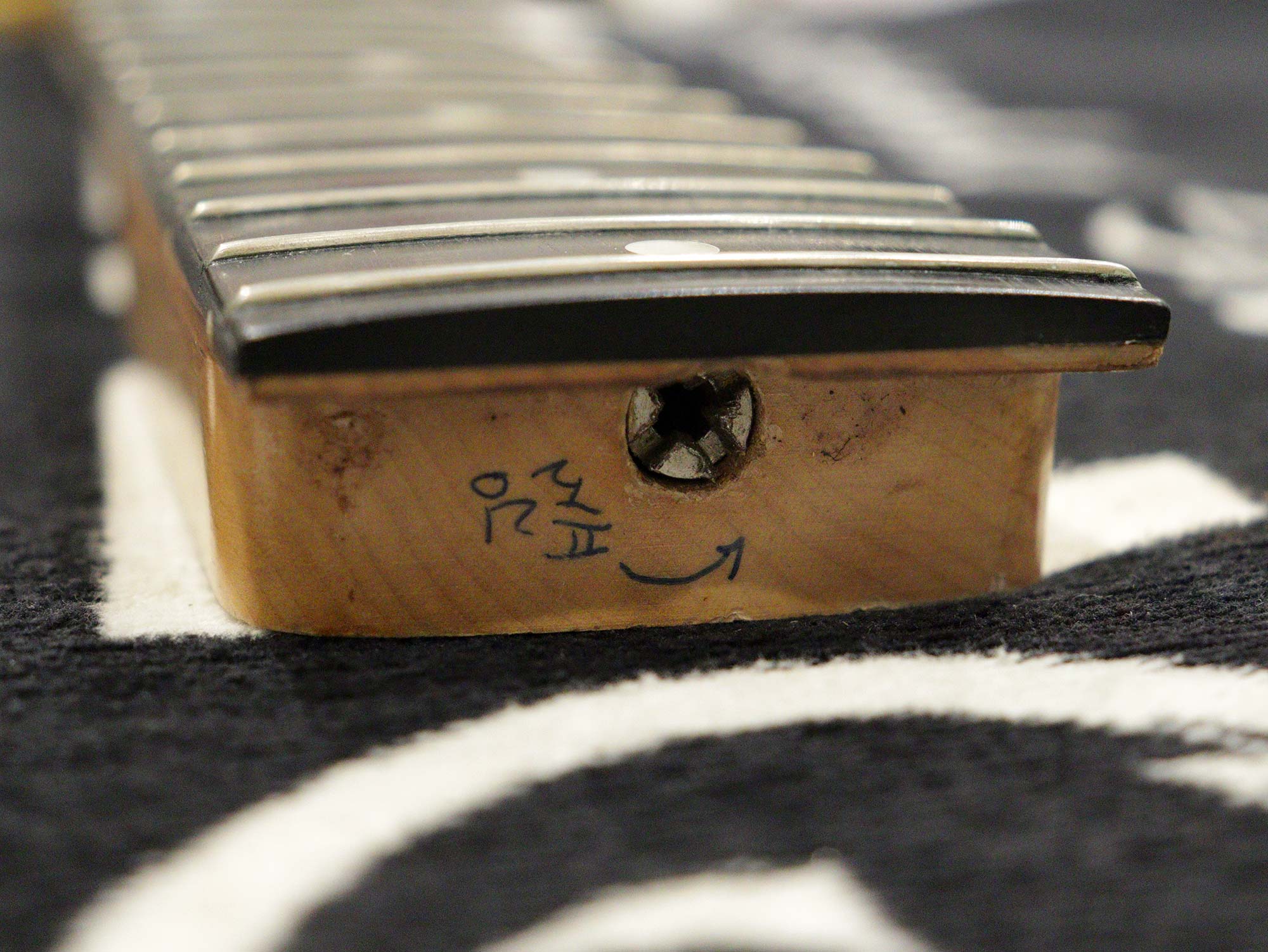 トラスロッドは8割ほどの締まり具合ながら効きは良好、ネックは現在4弦側若干の順反り、1弦側ほぼストレートの若干のネジレ状態、フレットは全体的に8割残りで現状ビビリや音詰まりもなく演奏性に問題はございません。