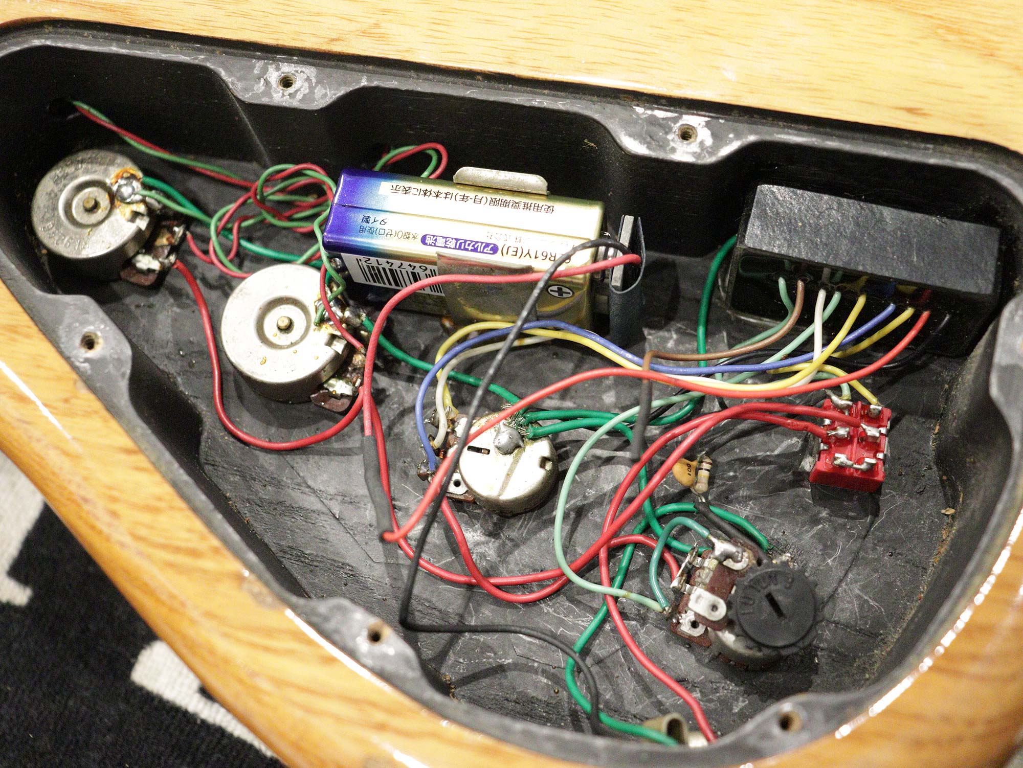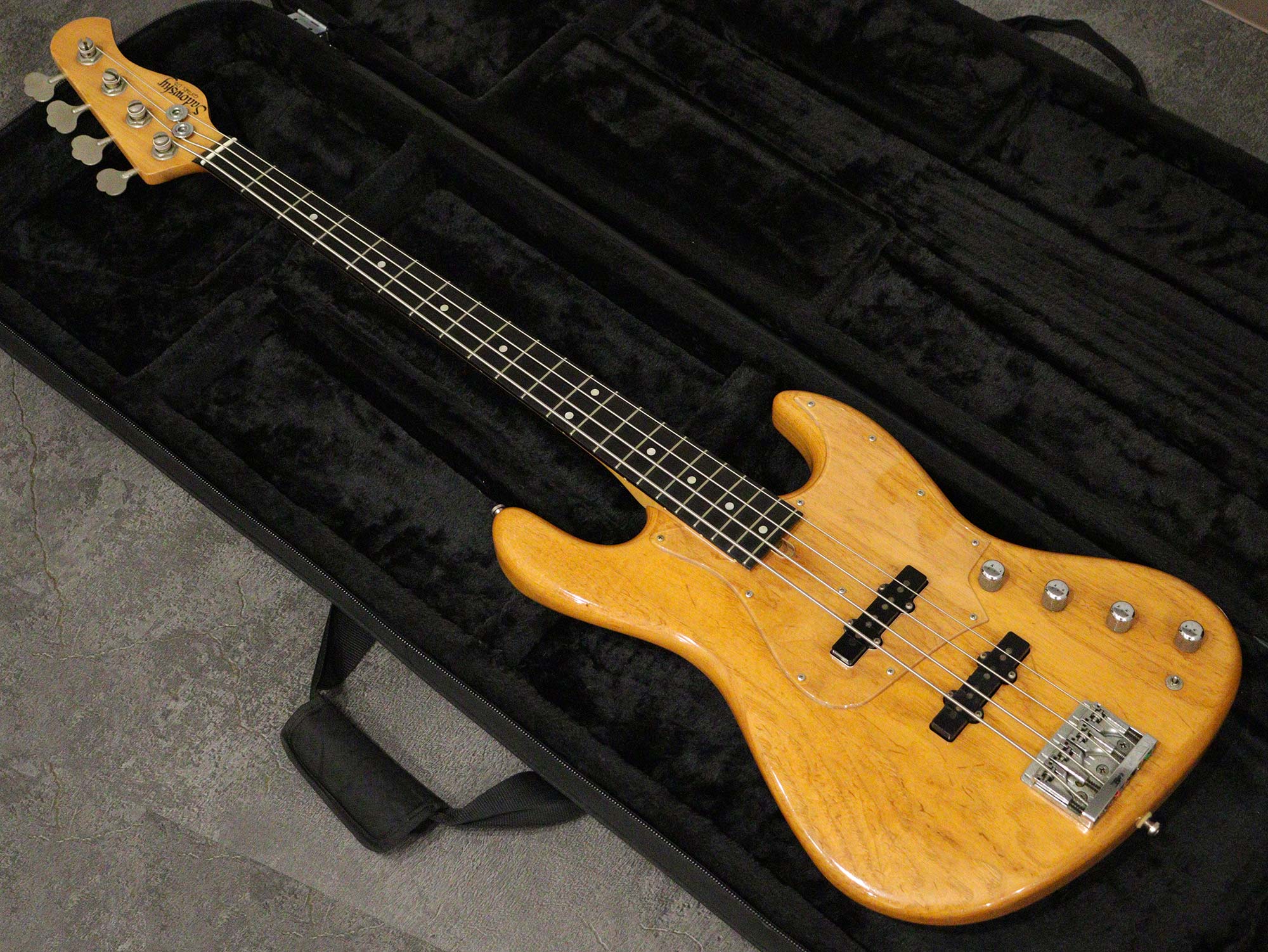 国内でも人気のアクティブベースの代表メーカーのひとつ「Sadowsky」よりLTD表記の初期に製作された「Sadowsky LTD」の1989年製中古品です。後付けでアクリルピックガードが取り付けられたアッシュボディ、エボニー指板、メイプルネック。ピックアップはオリジナルのJJスタイル、プリアンプはラベルがなく判別は難しいものの変更されている様子もなく配線材のカラーから恐らく「Bartolini TCT」搭載と思われます。コントロールは2Vol、Treble、Bass、アクティブのON/OFFスイッチとなっており、CTSポットは88年製、プリアンプには「8/89」の刻印がございます。