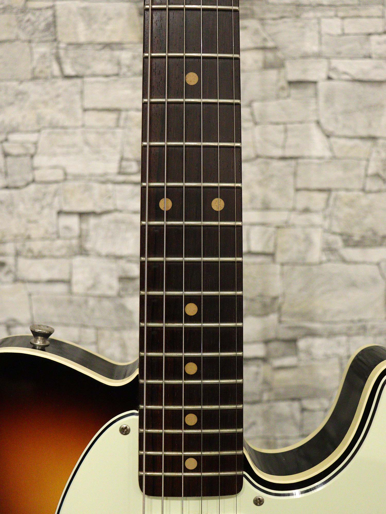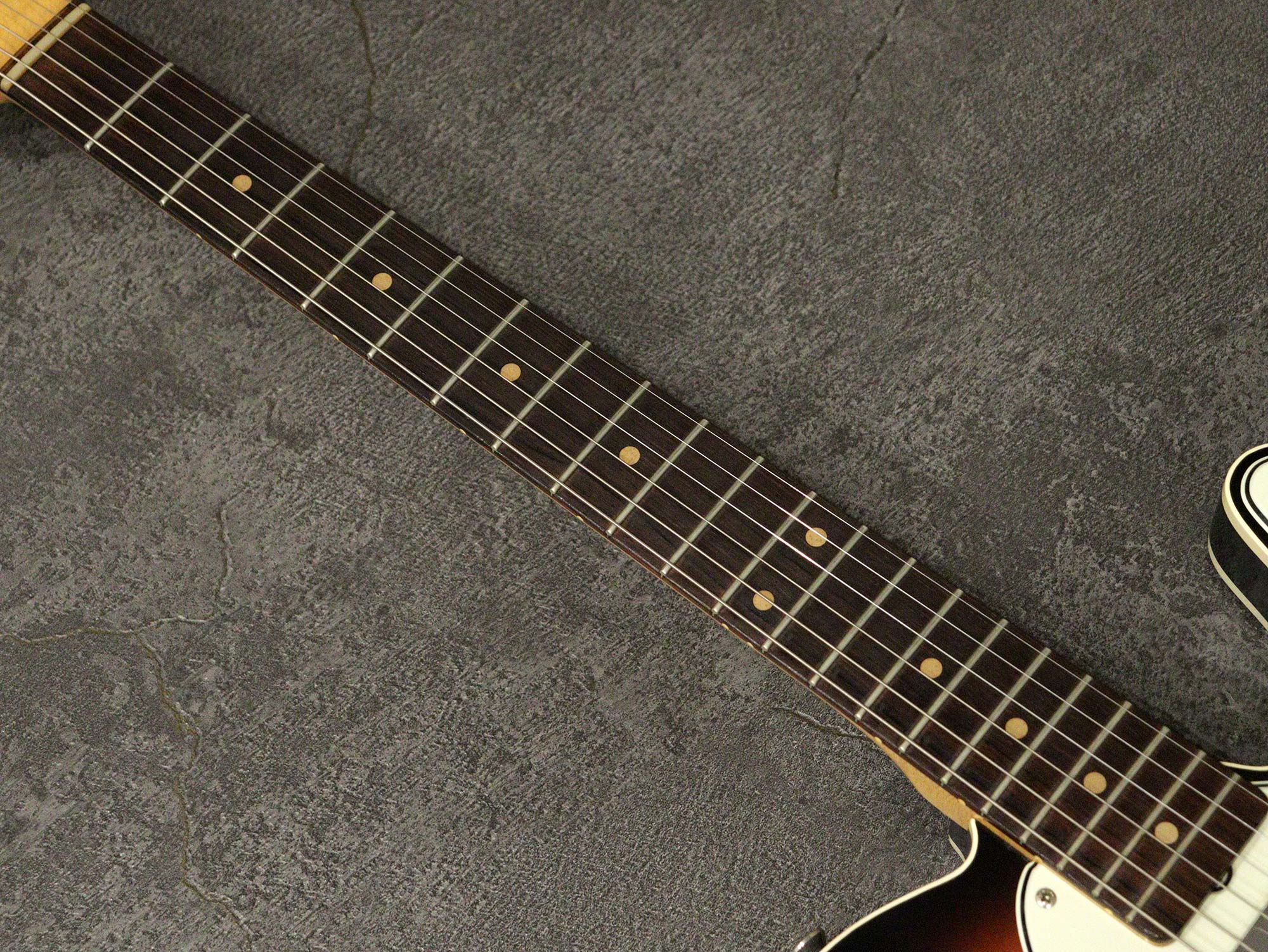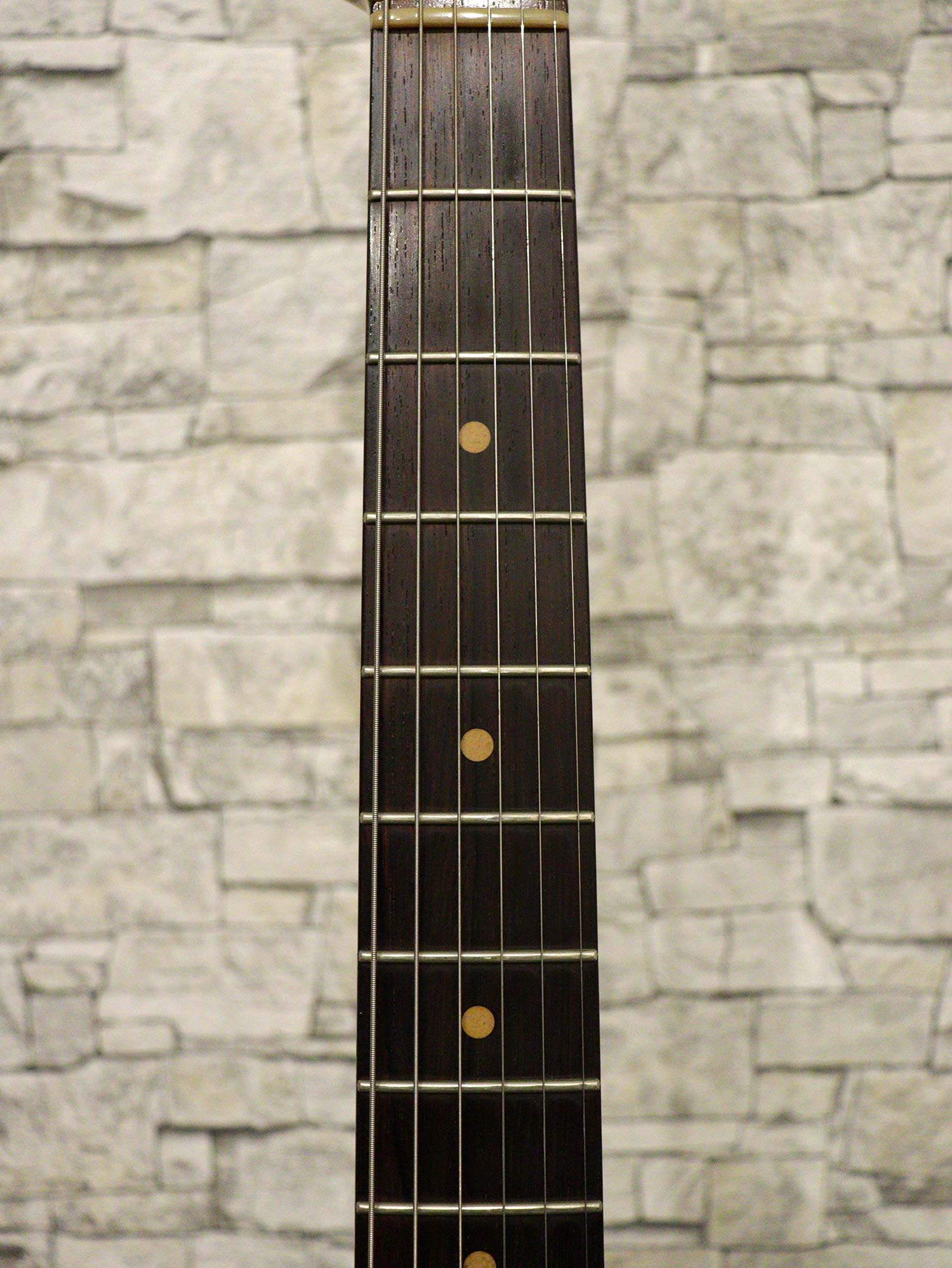 ネックはほぼストレートの丁度良い状態でトラスロッドは左右に余裕があり効きは良好、フレットは全体的に8割キープでビビりや音詰まりもなく演奏性に問題はありません。