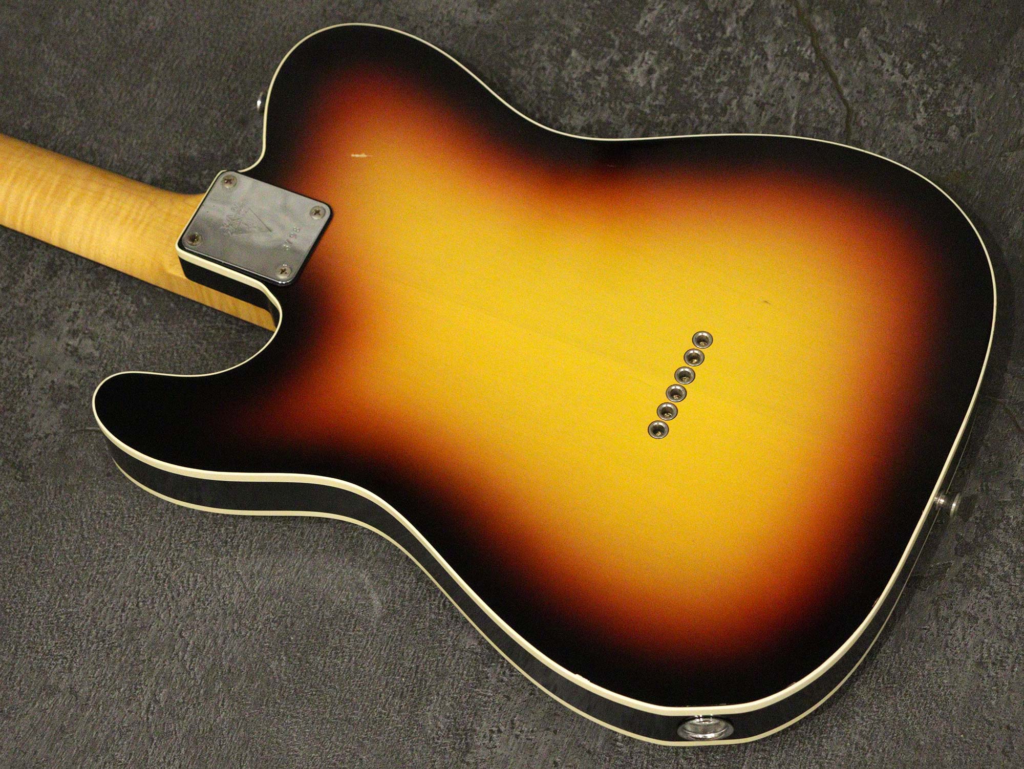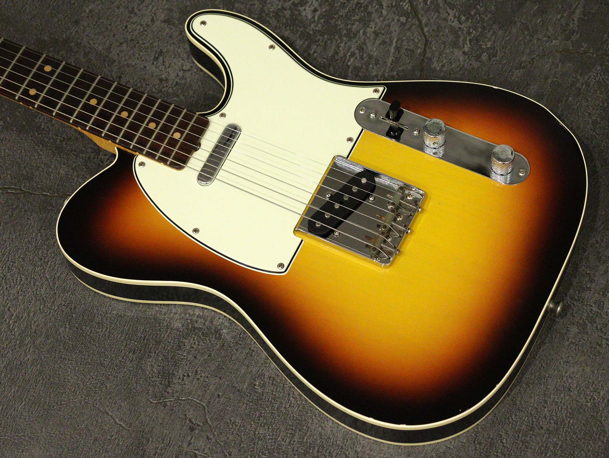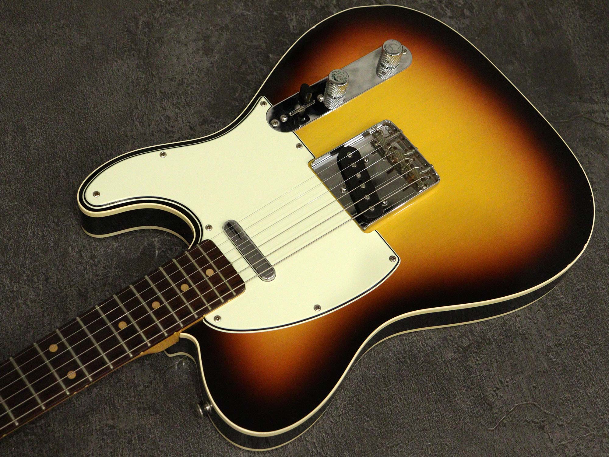 “Neo Vintage”を掲げPGM工房にて製造され極薄のラッカーフィニッシュで人気を博すヴァンザントによるカスタムテレキャスターモデル 「Vanzandt TLV-R2 3Tone Sunburst」2006年製の中古品です極薄のラッカーにて「(63)3Tone Sunburst」で仕上げられた2Pアルダーボディ、絶妙な「210R」ラディアスを採用したマダガスカルローズ指板、メイプルネック。ピックアップは「Vanzandt Tele-N & B-55」セットを搭載、コントロールは3wayセレクター、1Vol、1Tone。