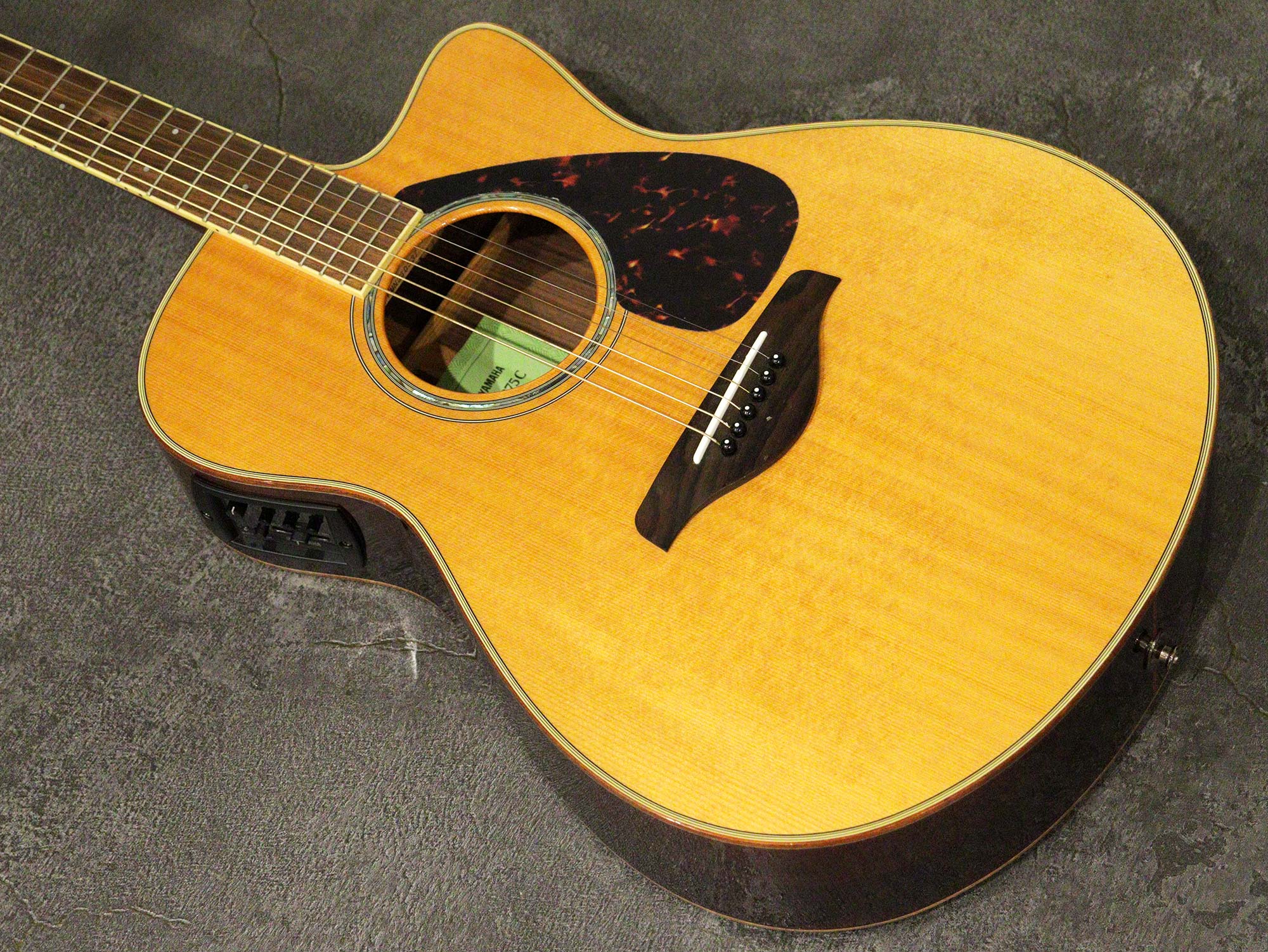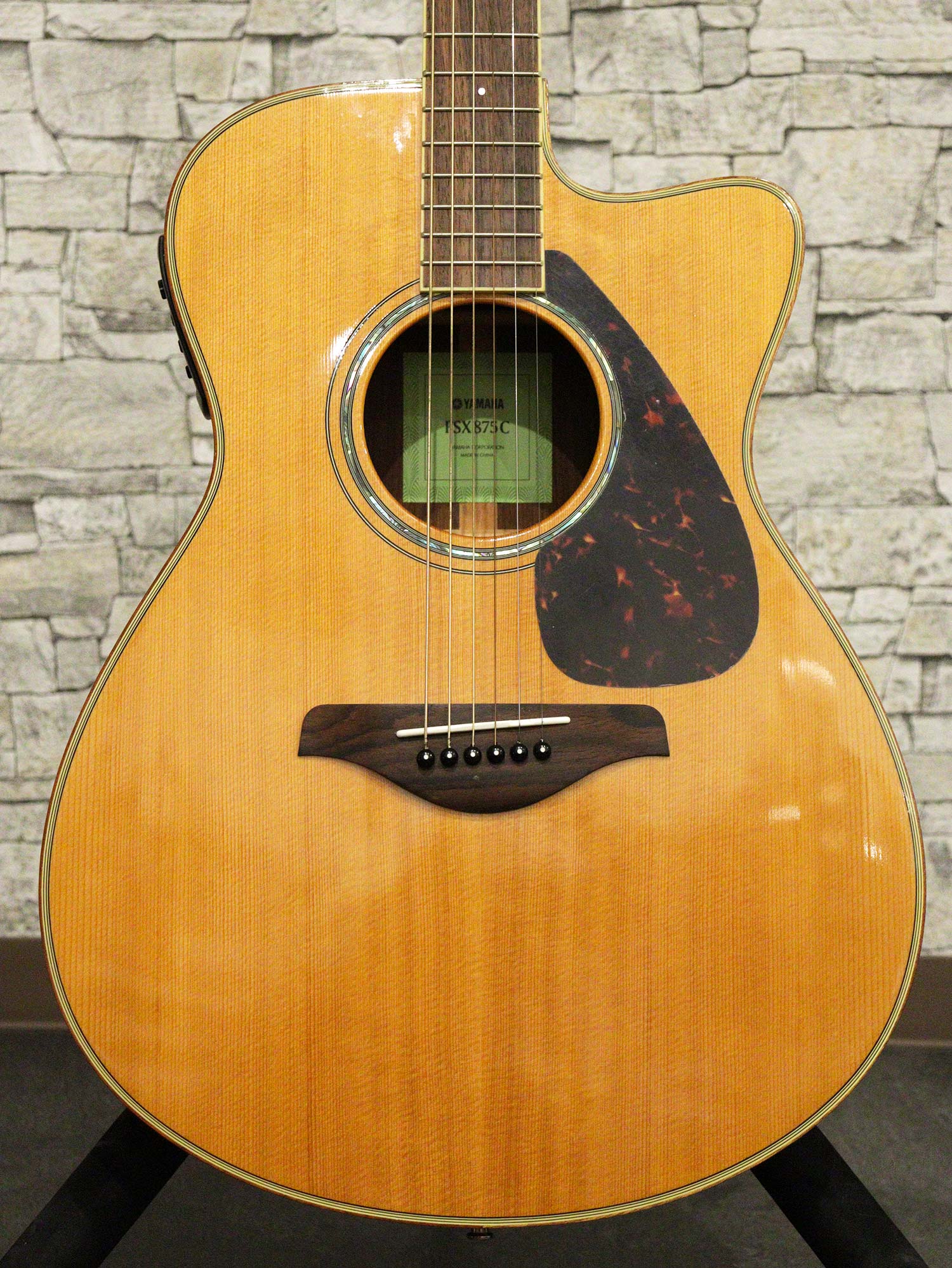 YAMAHAとショップのコラボレーションモデル「YAMAHA FSX875C NT」の中古品です。定番のナチュラルカラーで仕上げられたスプルース単板、サイド&バックはローズウッド単板を使用したFSボディシェイプのオール単板モデル。ブリッジ&指板はローズウッドのナトーネック。プリアンプは扱いやすい「SYSTEM66」を搭載。