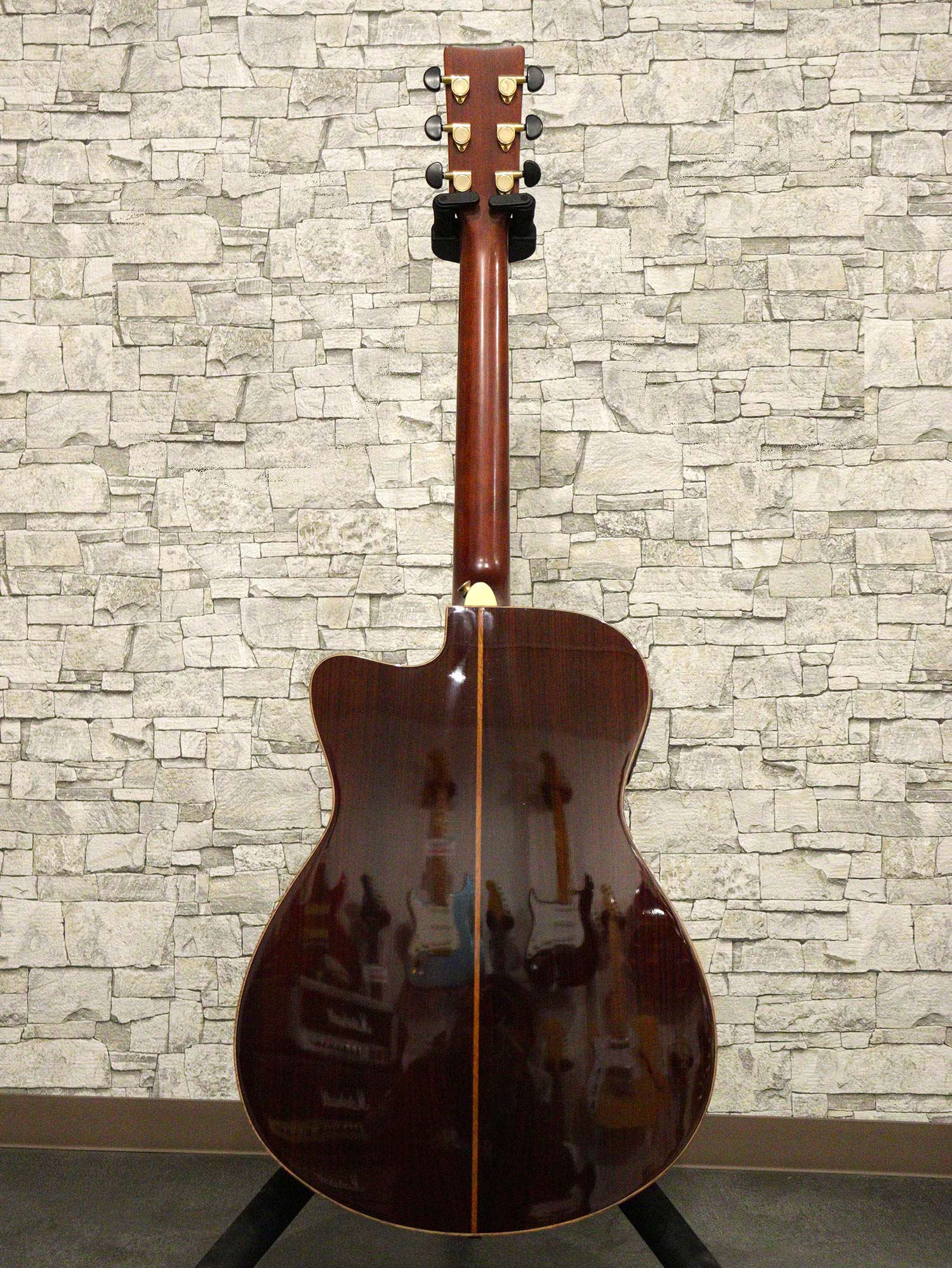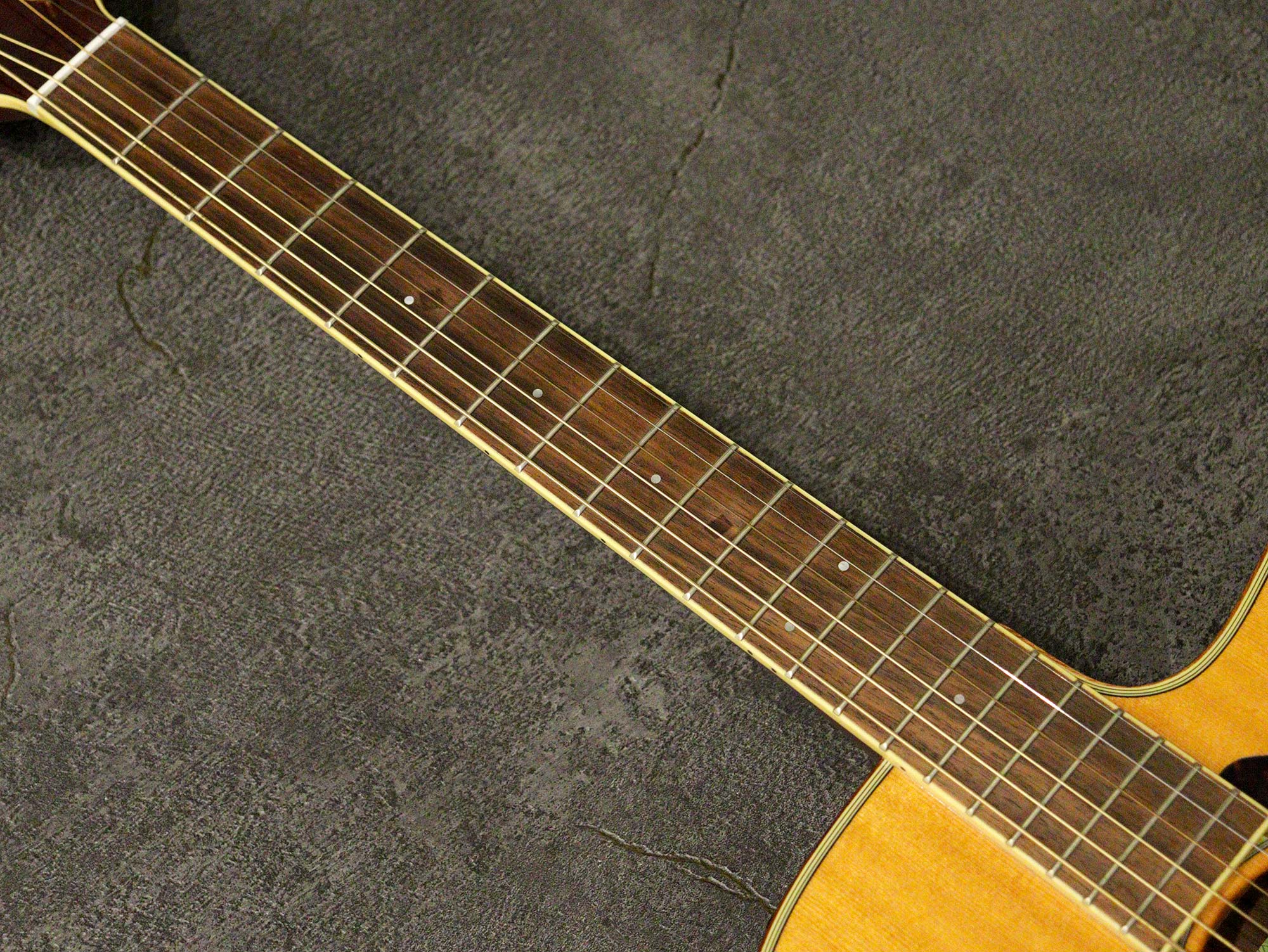 ネックはほぼストレートの丁度良い状態でトラスロッドは左右に余裕があり効きは良好、弦高は12フレット上で6弦側 約2.6mm、1弦側 約1.8mm、フレットは全体的に8割キープでビビリや音詰まりもなく、とてもよいコンディションを保っております。